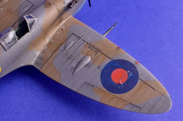 Что касается схемы окраски, то это мальтиец, их перекрашивали в полевых условиях не по шаблону, вот страница из книги "Malta Spitfire Vs - 1942":