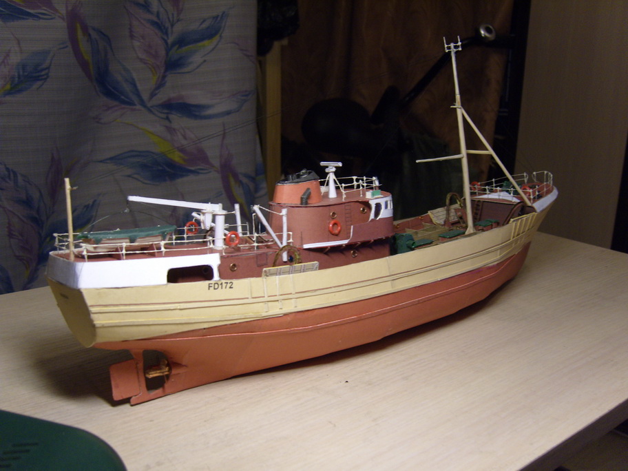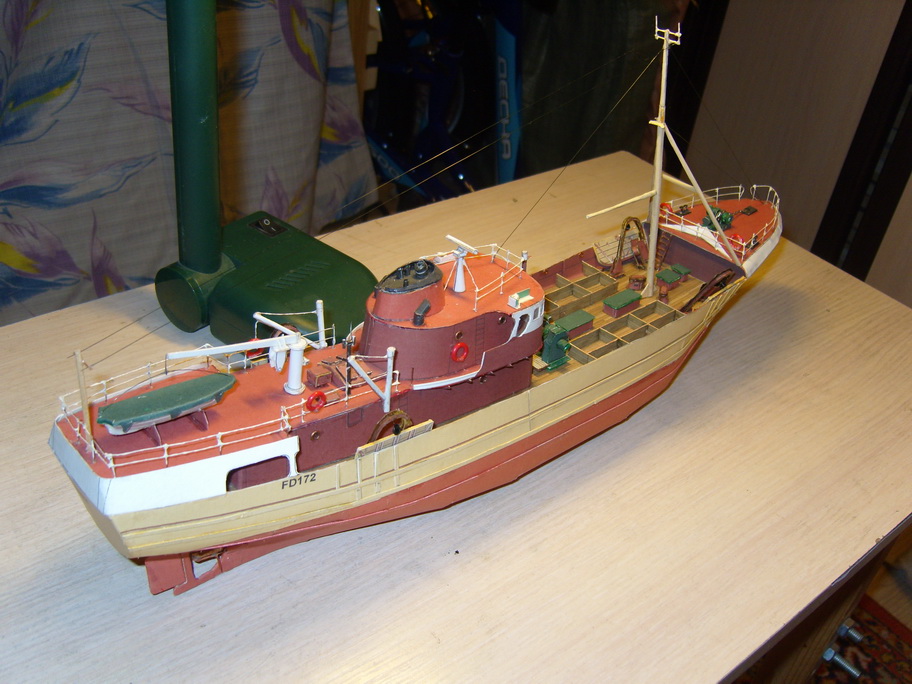 Шлюпка - вакуумное давление , винт - медная фольга , кнехты - гвозди (один мой знакомый их особенно ценит). Короче остались леера и такелаж. Я бы сделал более детально , но почти весь год тянул Алабаму , так-что успел только это.