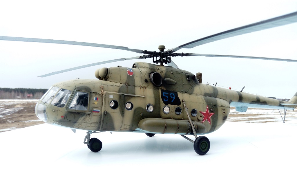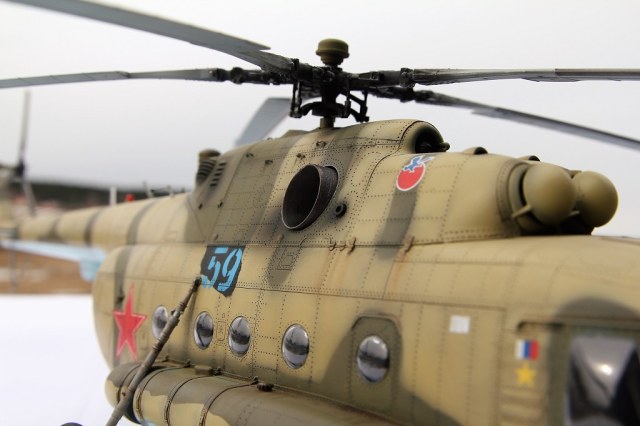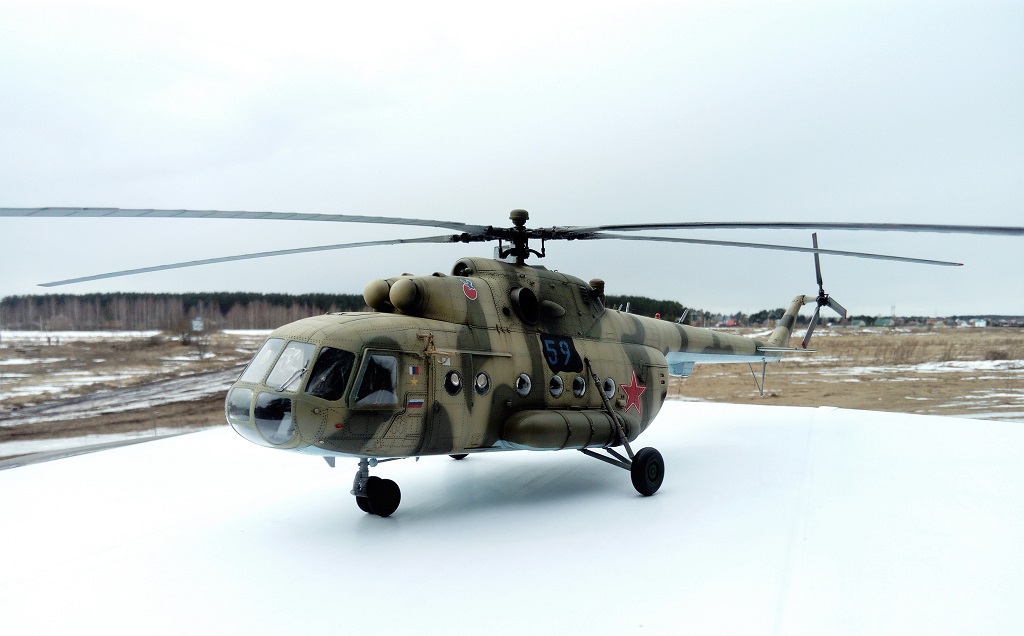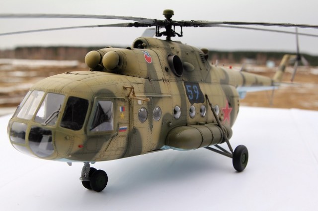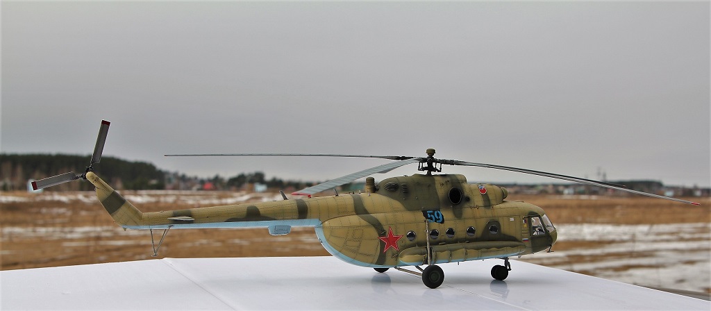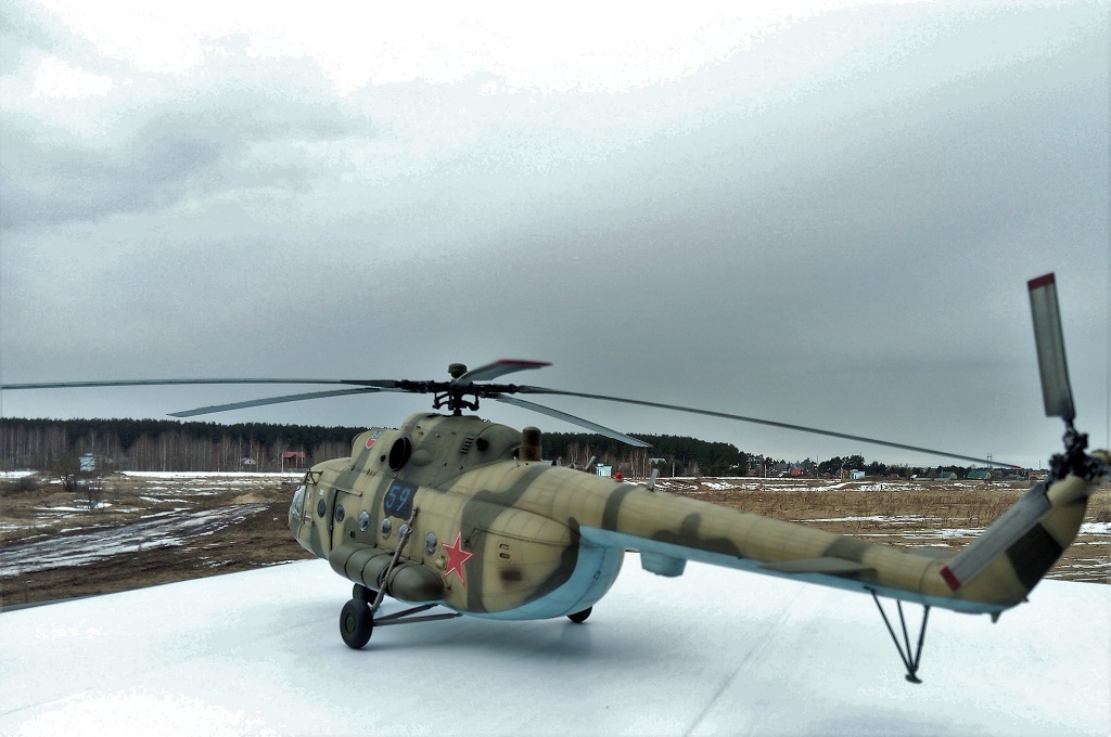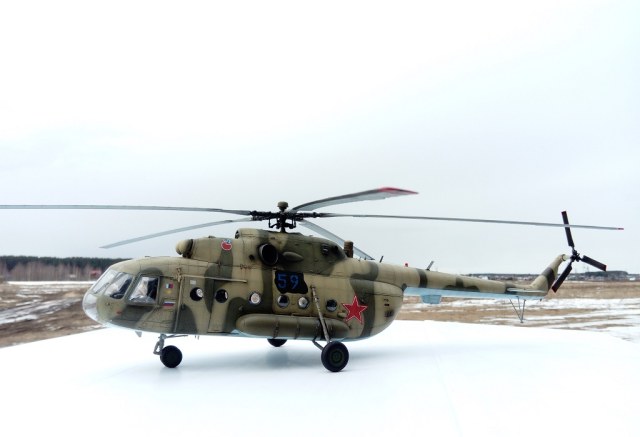 И снова здравствуйте! Закончил очередную модель на этот раз ми-8 в 35м масштабе , скажу очень приятно было собирать данную модель, все срасталось просто великолепно( может конечно на фоне амодела) но скорее всего нет! делал из коробочный вариант без каких либо переделок ,добавил только от себя антенны. Краски традиционно тамия. ПРИЯТНОГО ПРОСМОТРА!