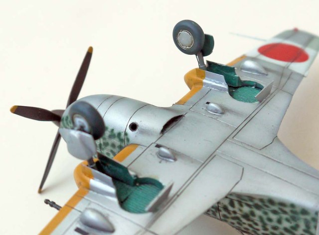 Из доработок сделано следующее: БАНО, ПВД, антенная растяжка, стволы пушек, стойки шасси и немного облагородил кабину. Красил автомобильным металликом ABRO, АКАНом и Тамией. Расшивку выделял звездовским акрилом с Фейри. Постшейдинг- тамиевский смок.