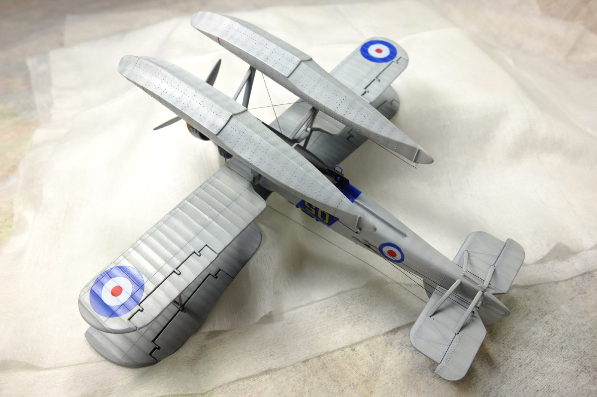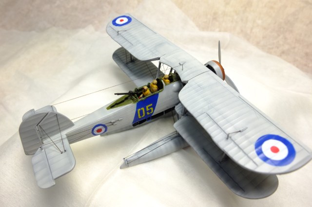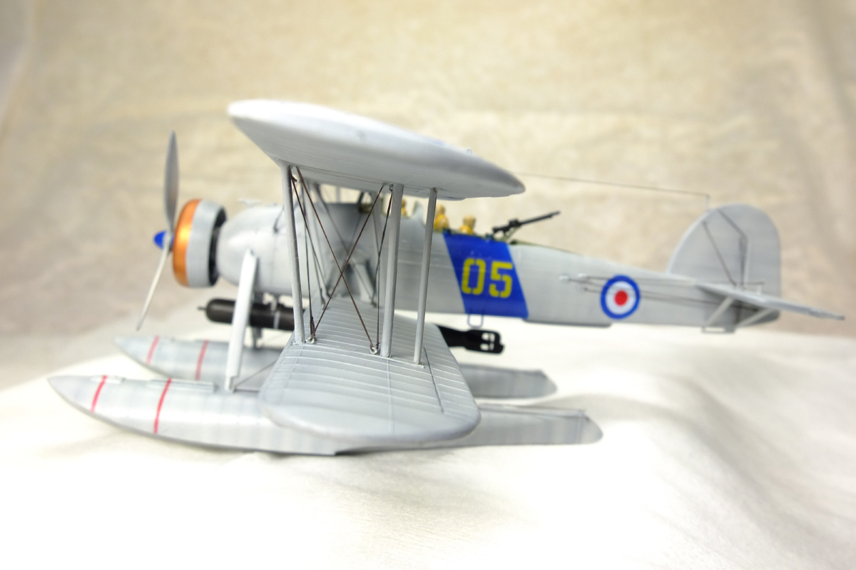 Сделано отлично, но предвоенная якобы одноцветная окраска очень коварна. В светло-серый Скай Грей красились только металлические поверхности, а там где полотно - там серебристый аэролак. Если признаться честно, то у меня и у самого Свордфиш, сделанный ещё во времена до скоростного интернета, целиком тупо задут серебрянкой, а как должно быть в действительности, хорошо видно на 32-м масштабе: