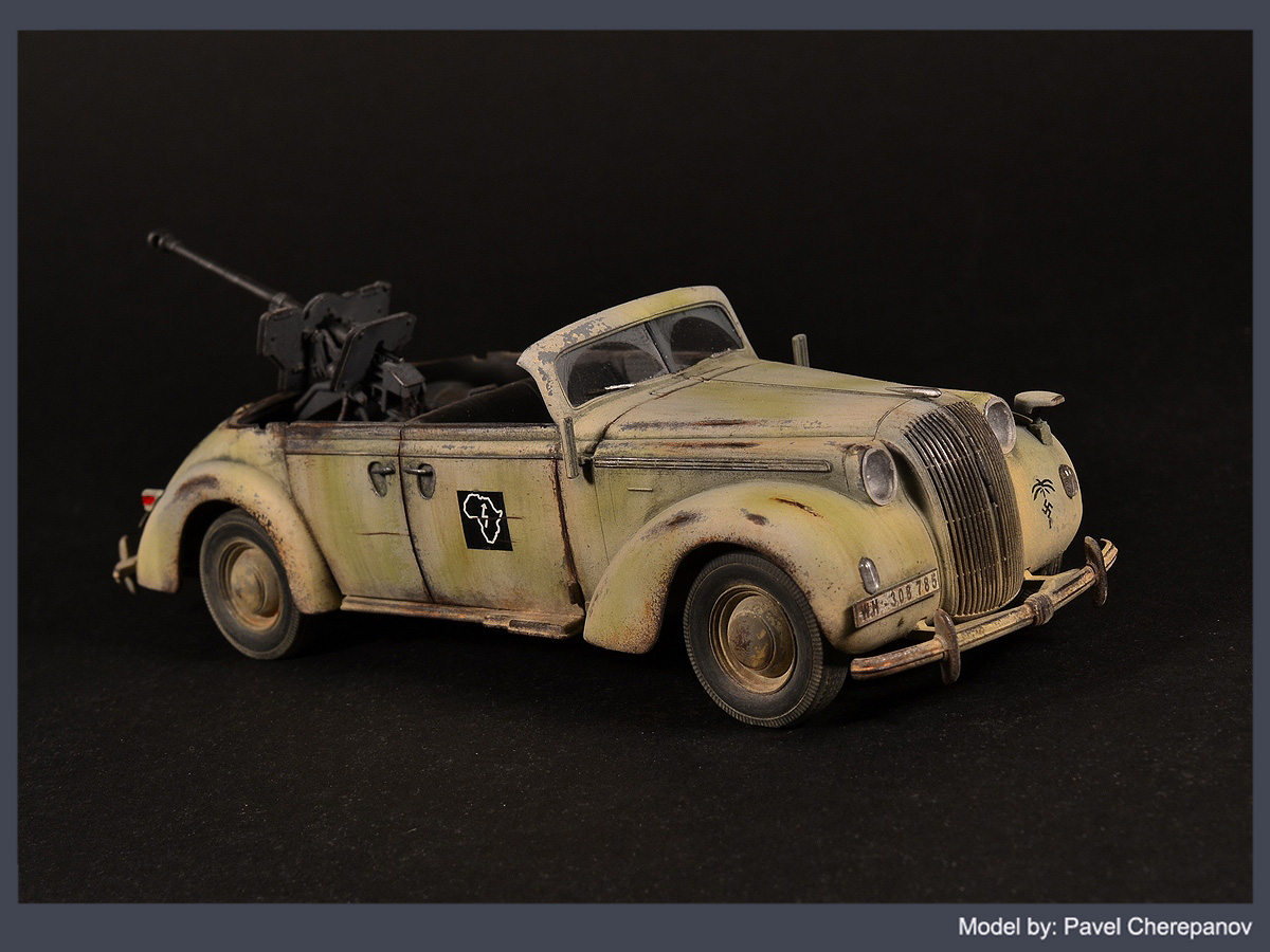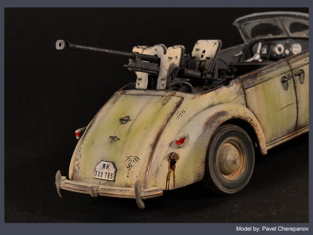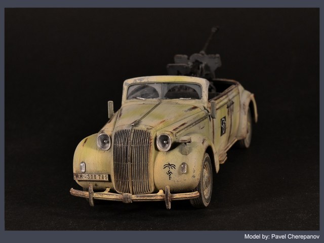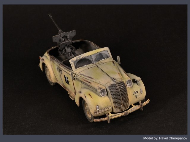 Новая работа основана на базе "Опель Адмирал" - у машины убраны заднее сиденье и тент, а вместо них смонтировано 28-мм противотанковое ружье. Конечно, вы скажете - "бред", ну и ладно, я художник, я так вижу)))