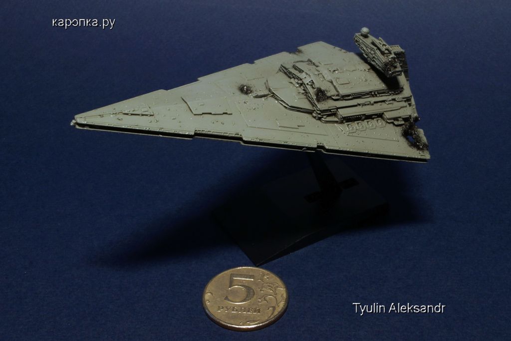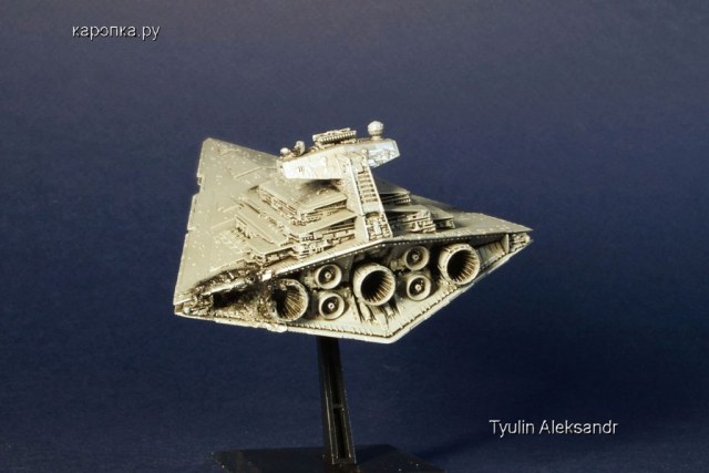 а какой-все таки у него масштаб? Указан 1:700. Судя по всему это класс "император", который в реальности (точнее выдуманной реальности Звездных войн) имел длину 1600м. Соответственно в таком масштабе длина модели должна быть более 2 метров