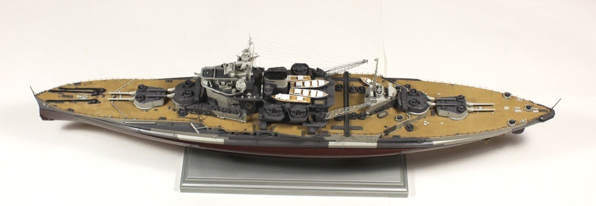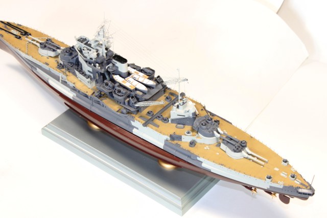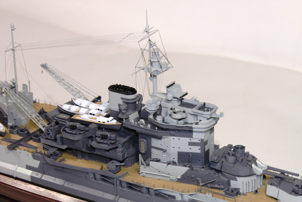 Напишу подробнее, почему песок. Леера только по корпусу, прожектора можно было высверлить и застеклить как и иллюминаторы, такелаж не аккуратен и разной толщины, не все вентиляционные грибки смонтированы, щиты и гнезда у мелкашек толстенные, плотики надо было бы обвязать, где-то стыки от прессформ недостаточно обработаны, нет авиации, не следил за соответствием комплектации году эксплуатации. Ну и еще наверное можно найти замечания. В конце-концов пусть в галерее будет больше действительно хороших моделей.