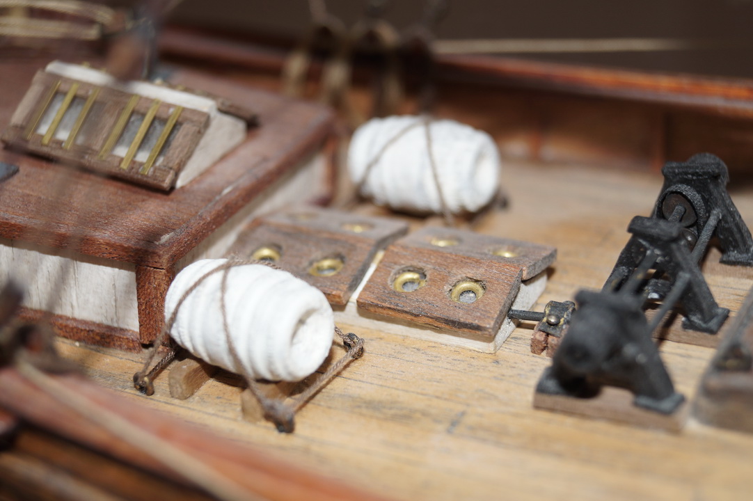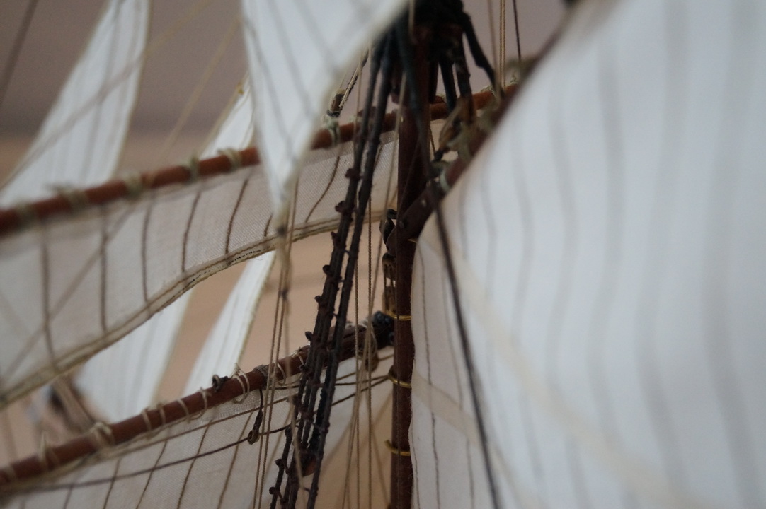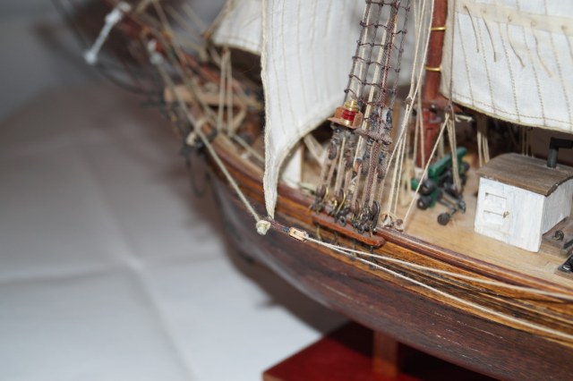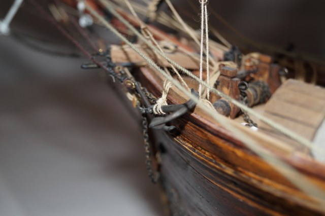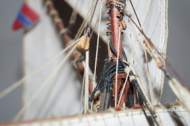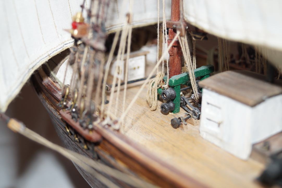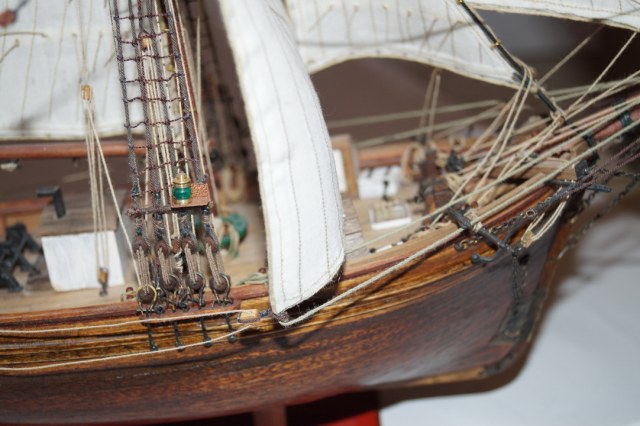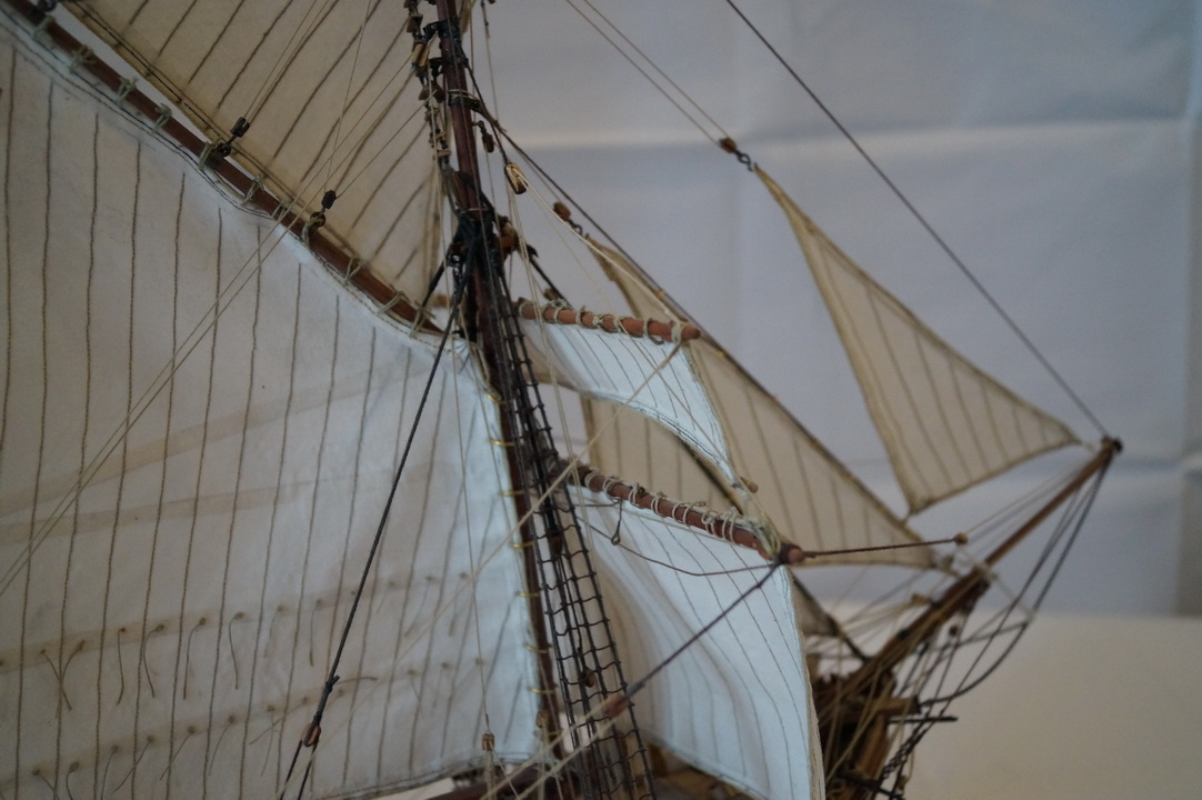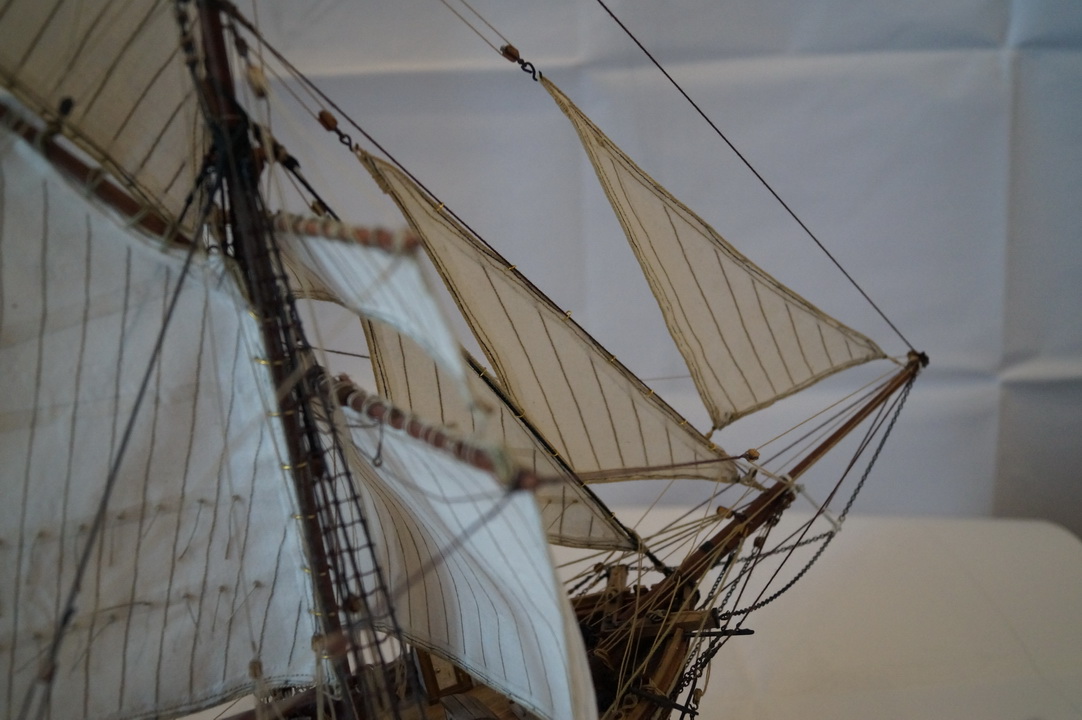 может надо было больше внимания уделить такелажу...блокам в частности...купить меланиевские к примеру,они смотрятся гораздо интереснее...нити малость лохматятся...