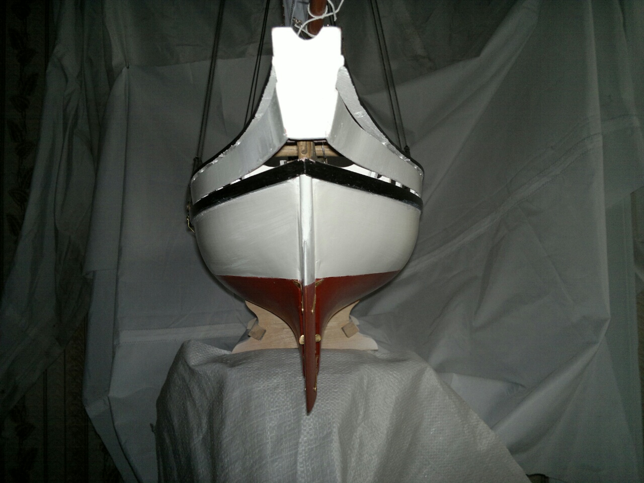 Двойное ощущение: какая-то недоработка во всем.Косяков по линии грамотности не обнаружил.Все так как положено,все запасовано по норме,правильно проведено и натянуто,И в то же время кое-где недошлифовано,кое-где торчит в сторону,я не имею ввиду подвязку на гике,хотя концы так/!!/ торчать не должны.А вот то что с нуля и ПЕРВАЯ-очень даже хорошо.В галерею можно и дальнейших.....