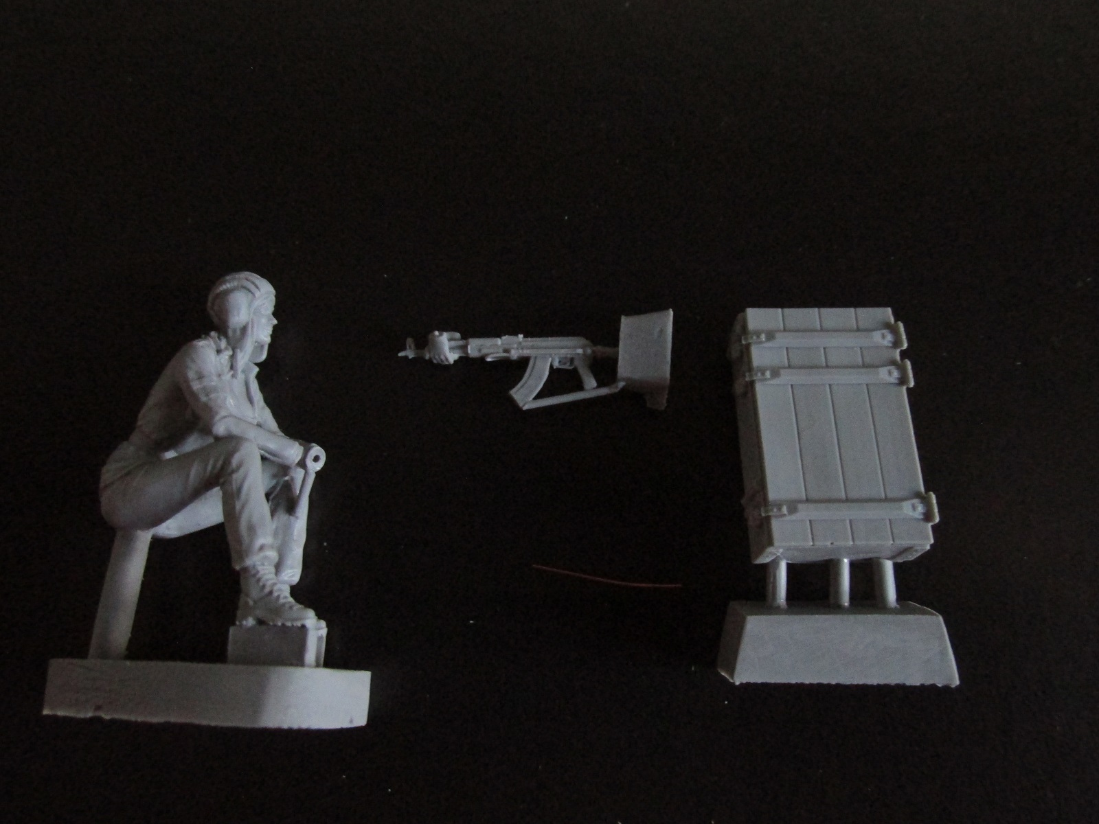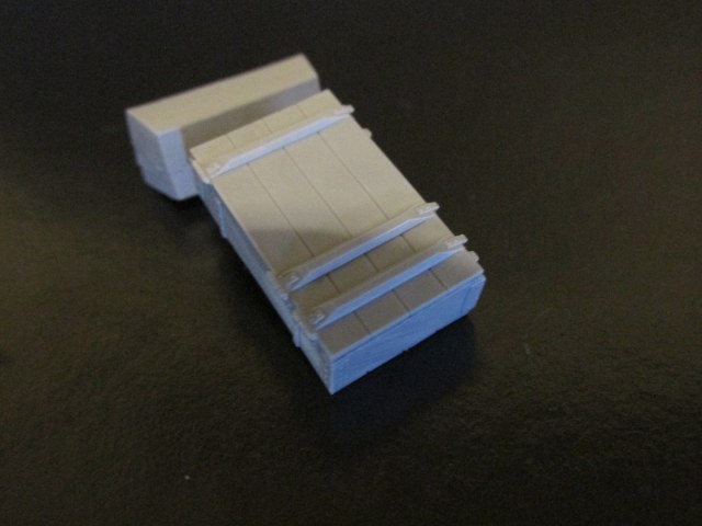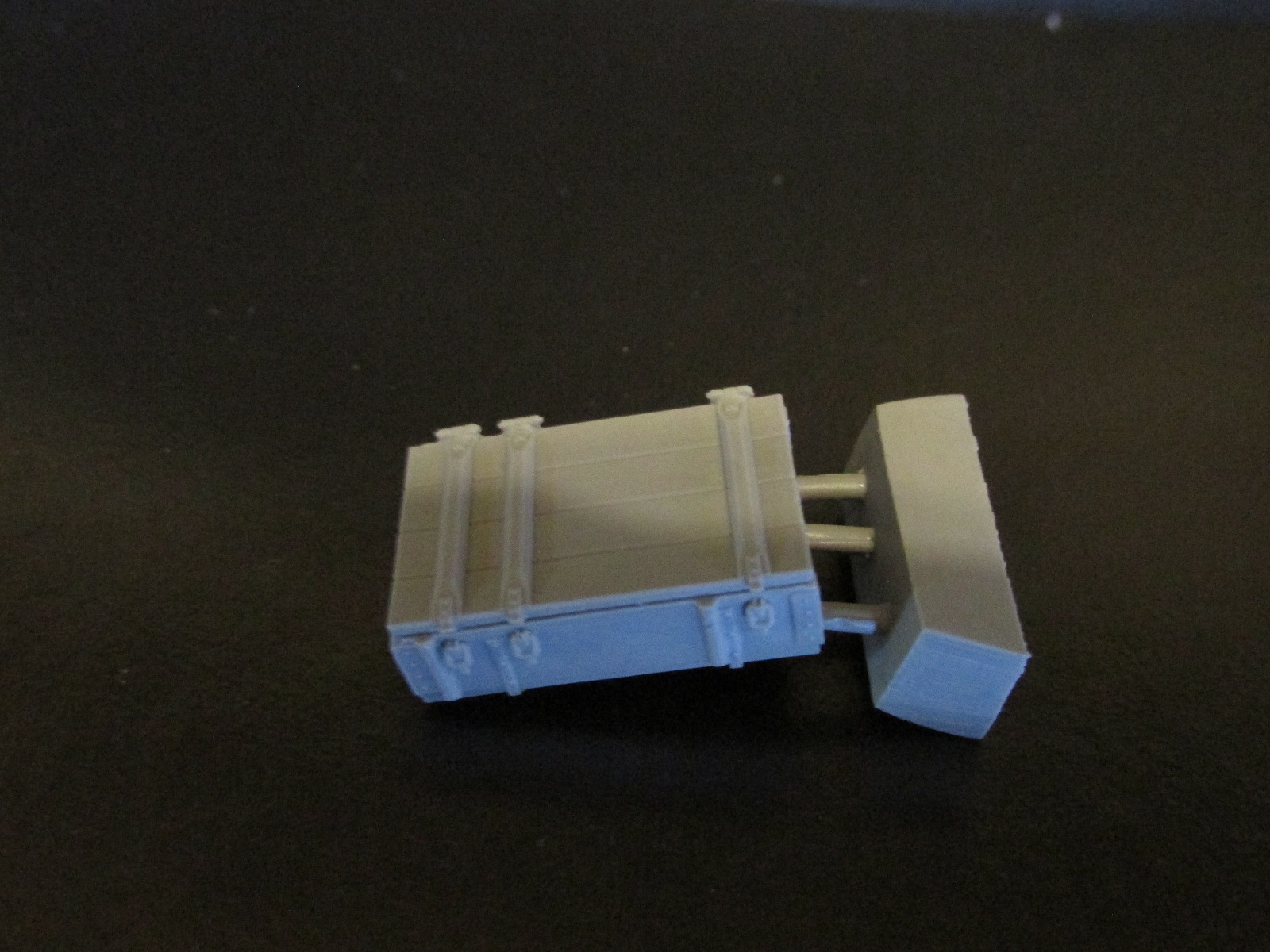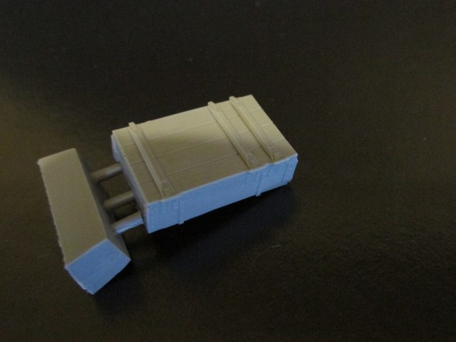 В третьем пакетике лежит ящик с открытыми замками. Его качество литья ещё лучше. Чётко пролиты все мелочи – петли, сами замки, головки гвоздей на уголках. Жаль только нет декалей на технические надписи. Да и фиг с ними.