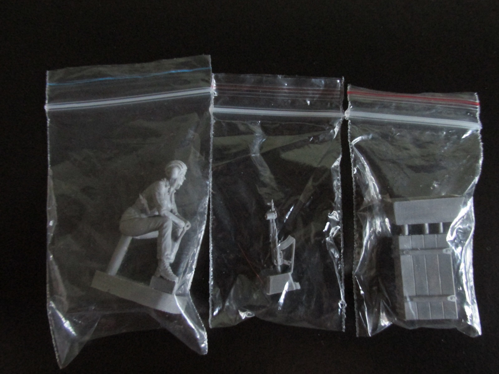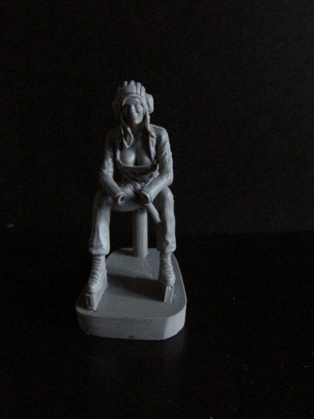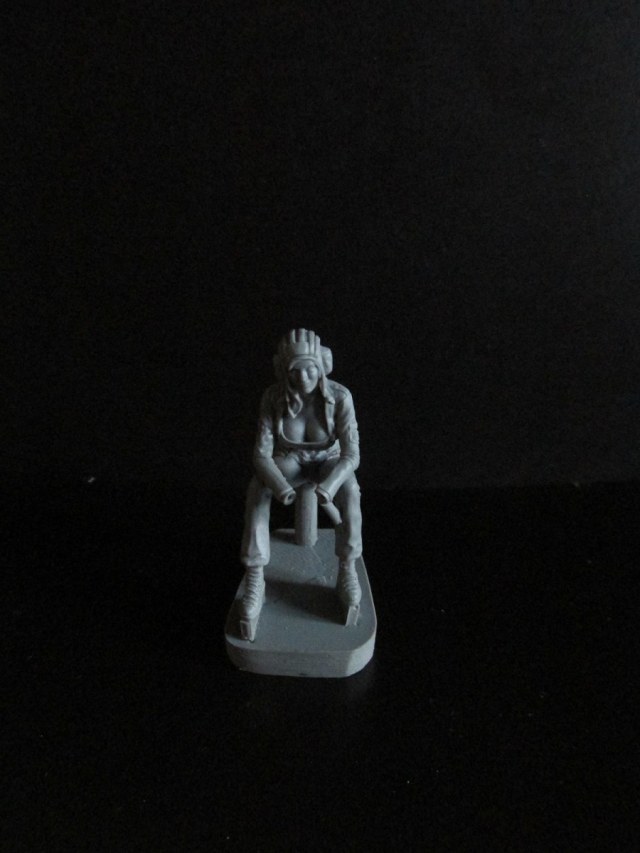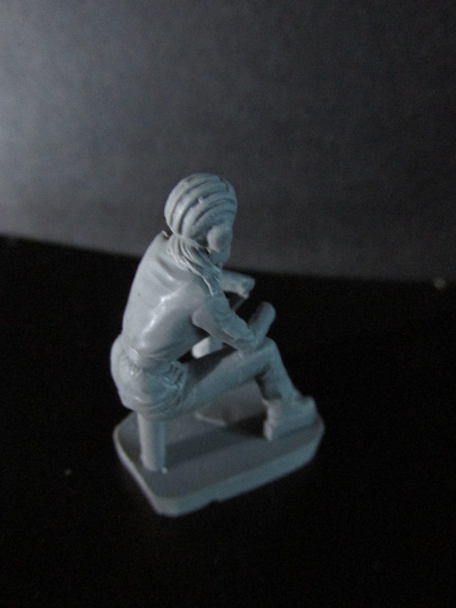 В первом пакетике фигурка самой танкистки в сидячей позе. На ней стандартные армейские берцы, шлемофон ТШ-4 и форма №4 поздний вариант без набедренных карманов (первый вариант принят на оснащение ещё в 80 –ых и выполнен по натовскому образцу), и с не по уставу открытым декольте с четвёртым размером (не тесно ли в танке…:)). На кармане левого рукава виднеется контур шеврона Россия вооружённые силы, но если память не изменяет в 2005 он был отменён, да и не во всех частях шевроны носились, так что кто хочет может и зачистить. Качество литья отличное, местами имеется шов, но всё устранимо. Утяжин и не доливов нет.