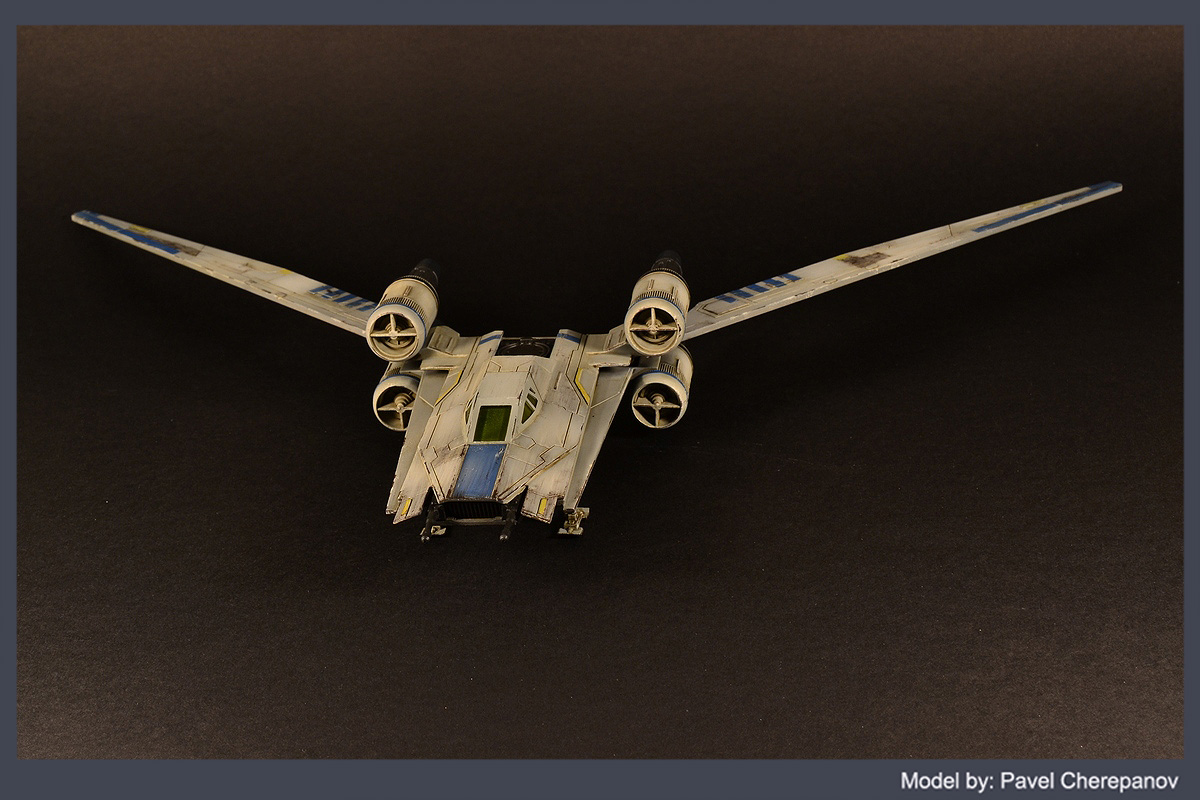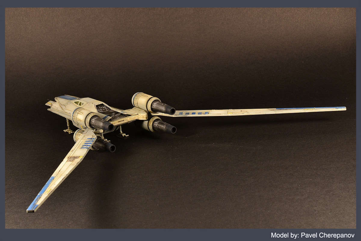 Официальное название этого красивого и изящного корабля - UT-60D U-wing starfighter/support craft. Его назначение определяется как звездный истребитель, десантный катер и корабль огневой поддержки, 3 в 1. Использовался Альянсом повстанцев, в частности, в недавно вышедшем фильме "Изгой-один: Звёздные войны. Истории" (2016) один из таких кораблей прорвался к башне Цитадели на Скарифе, чтобы оказать поддержку отряду диверсантов "Изгой-1". Пока герои искали в башне чертежи Звезды Смерти, на пляжах Скарифы, у подножия башни, развернулись ожесточенные схватки диверсантов с имперским гарнизоном. Гарнизон поддерживали огнем гигантские шагоходы AT-ACТ, один из которых подбили огнем из U-WING, причем из бластерной пушки, установленной в открытом люке десантного отсека. Затем U-WING высадил десант на пляже, но позднее был уничтожен огнем имперских истребителей... В итоге, благодаря выигранному в отвлекающих боях времени, герои смогли передать чертежи куда следует и Добро восторжествовало)))