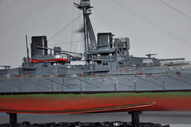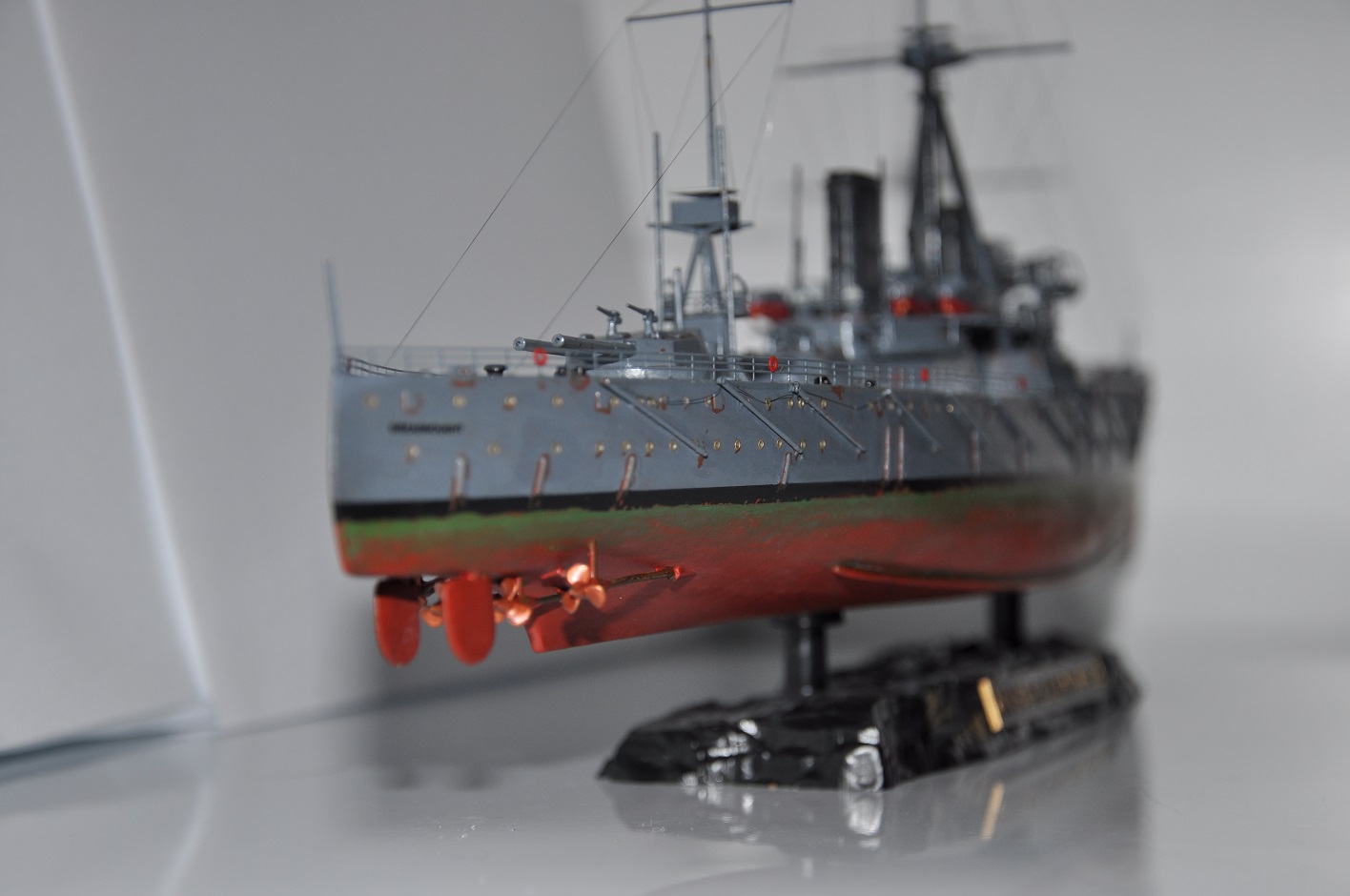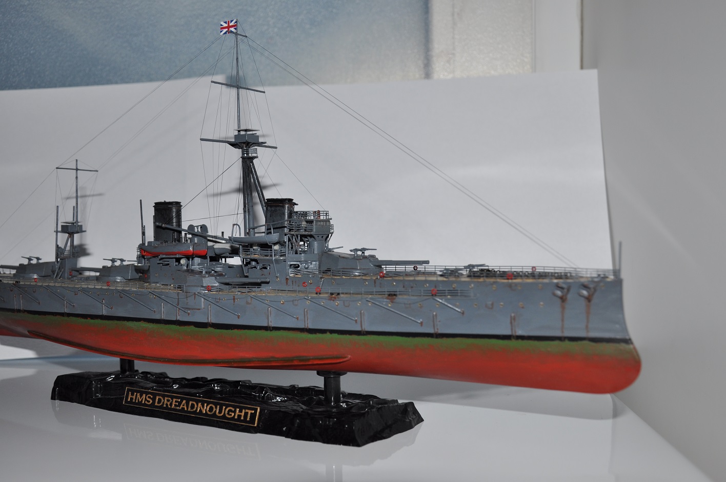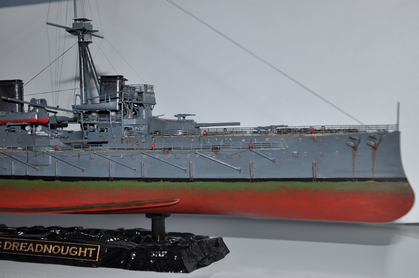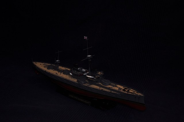 Жила-была моделька Дредноута от Звезды. Собранная на 100% из заводской коробки, корявенько покрашенная кисточкой краской от той же Звезды. С щелями, кривизной и всеми прочими косяками набора - кто собирал, тот знает.