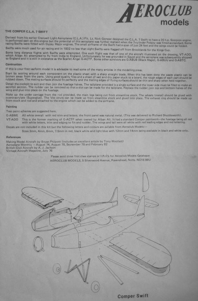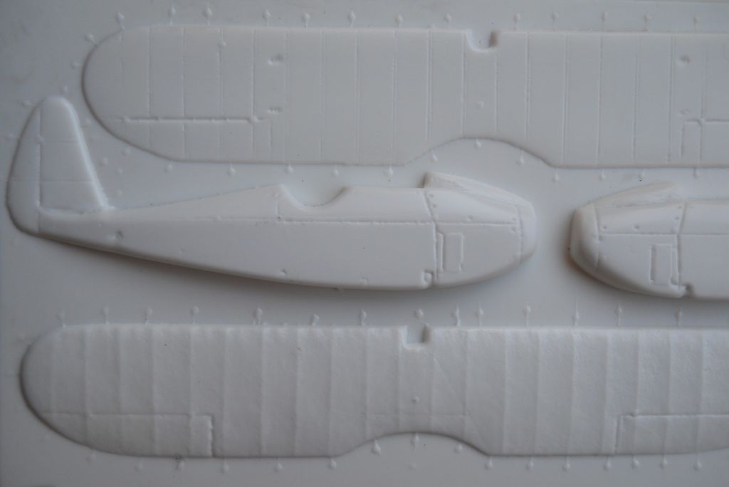 Вакуумформованная модель от фирмы Aeroclub упакована в полиэтиленовый пакет. Масштаб 1/72. Все детали отформованы на одном небольшом листе пластика с довольно неплохой проработкой. В наборе присутствуют детали из белого металла, профиль из пластика и проволока. Декаль отсутствует. Инструкция не содержит схемы сборки.