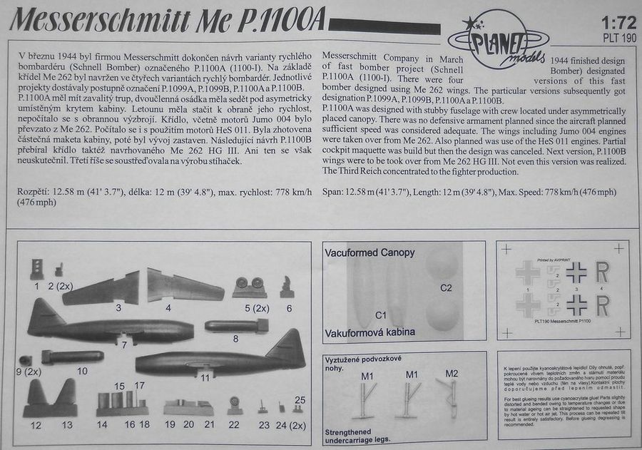 Модель Messerschmitt Me P. 1100A Schnell Bomber может являться интересным продолжением известной серии Ме-1099 от Revell. Рекомендуется любителям темы Luft46.