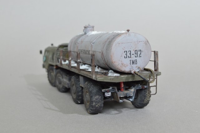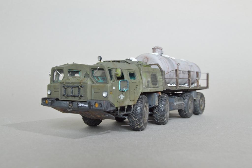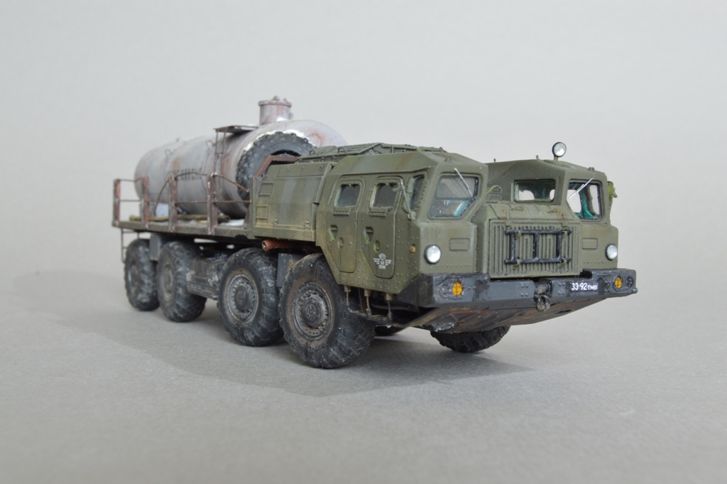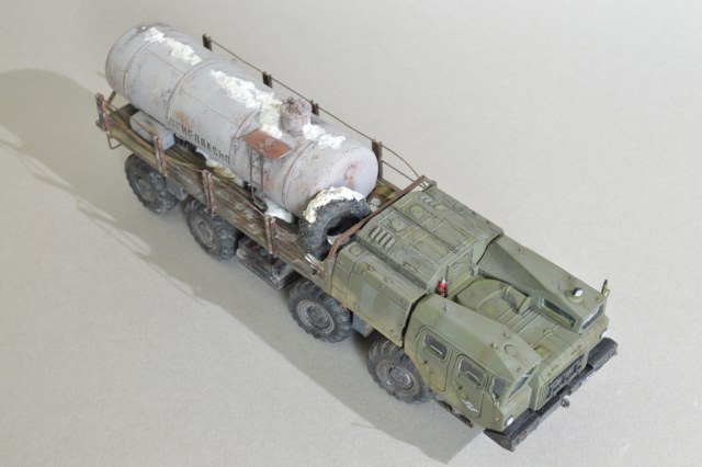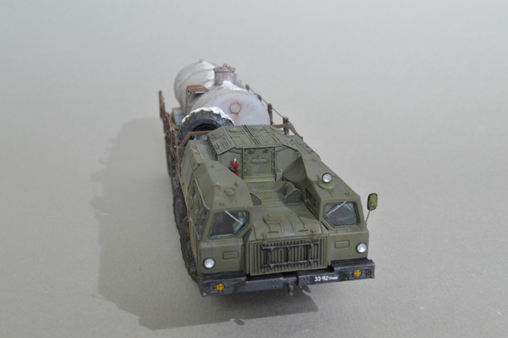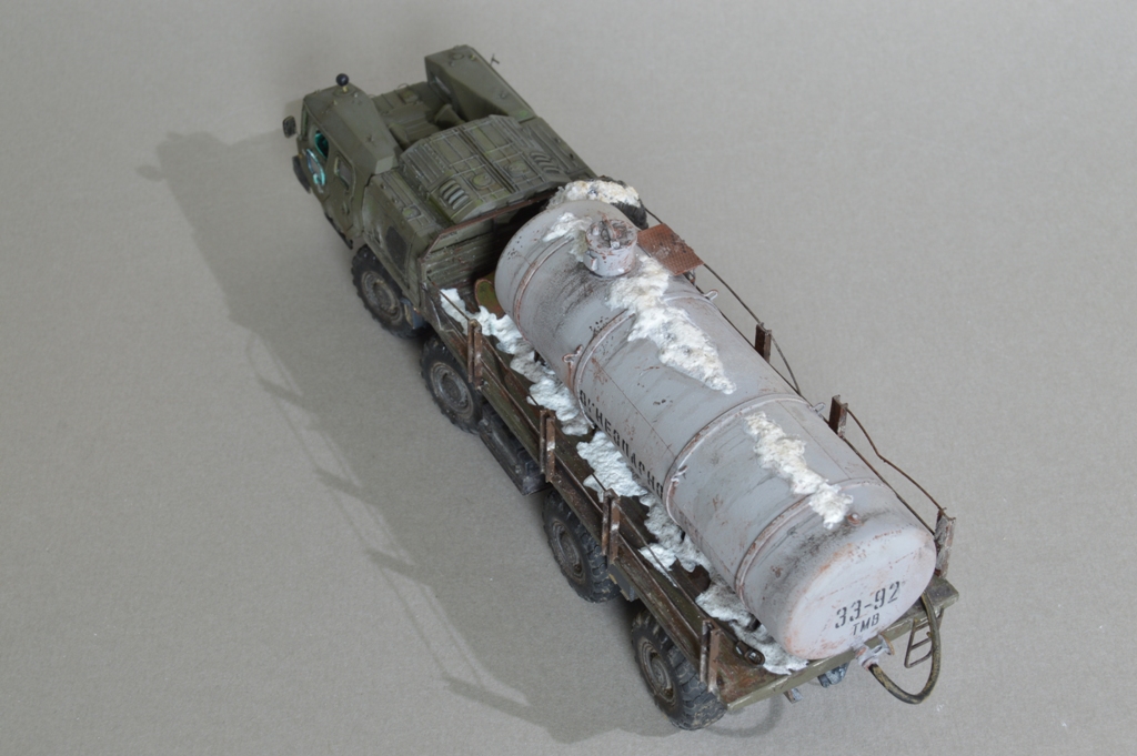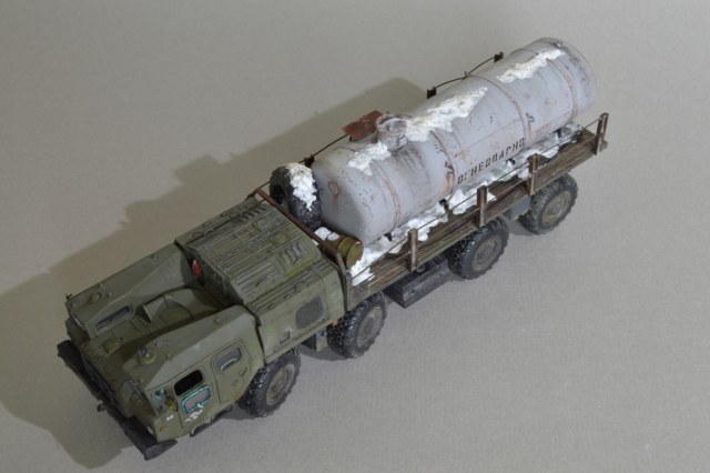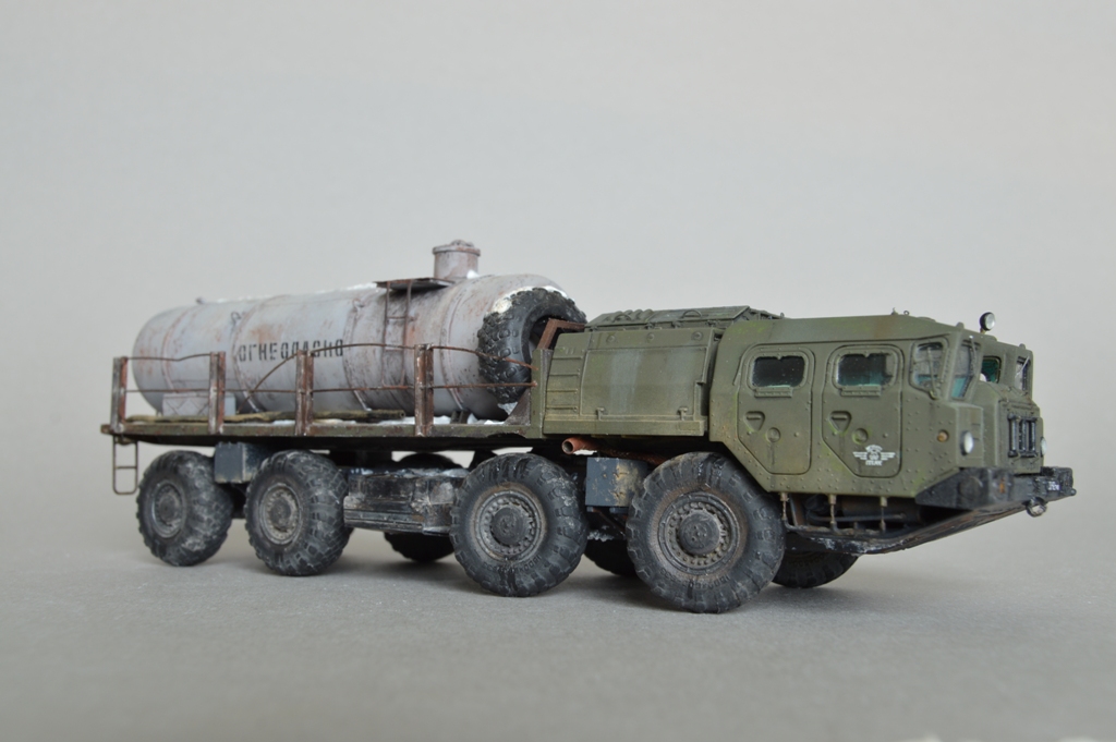 Представляю вашему вниманию еще одну свою поделку.Приобрел набор от Тохсо по моему года два тому назад.В коробке,многие знают, Маз-543 Эльбрус,но так как мое направление в моделизме сугубо гражданское,долго думал,что бы из него замутить.                      Первый раз "Ураган"я увидел в Уренгое, в начале 70-х.Сосед по площадке постоянно около дома ставил когда из рейса приезжал.Был он бортовой,правда не помню какая модификация,может 543-й,а может и 7310.Последний в серию пошел с 1973 года.            Думал,думал и придумал делать не 543-го,а 7310.Он с навесным (баки,ящики),на мой взгляд,как то по брутальнее смотриться.Вроде не так давно "Моделколлект"выпустила 7310 бортовой.Я правда в руках его не держал,не знаю насколько он проработан,думаю,что примерно как и от "Тохсо".Короче,что бы не повторяться,свой решил сделать с "бочкой".Такие я тоже видел довольно часто.На обычную бортовую плотформу закреплялась емкость,самодельная или от чего либо,подходящая по габаритам.На них по зимнику саляру на буровые возили.Да и фото оригинала в "однокласниках",в Уренгойском альбоме нашел.