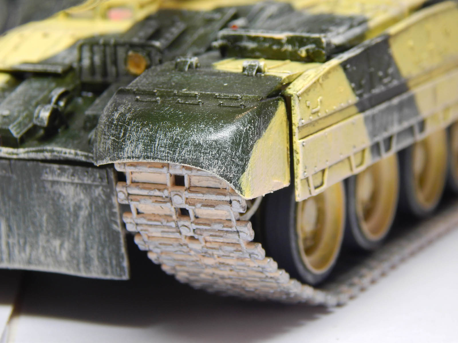 весьма недурственно смотрятся потертости,в особенности на полках.Плохо прокрашены траки- восбенности торцовая часть...
