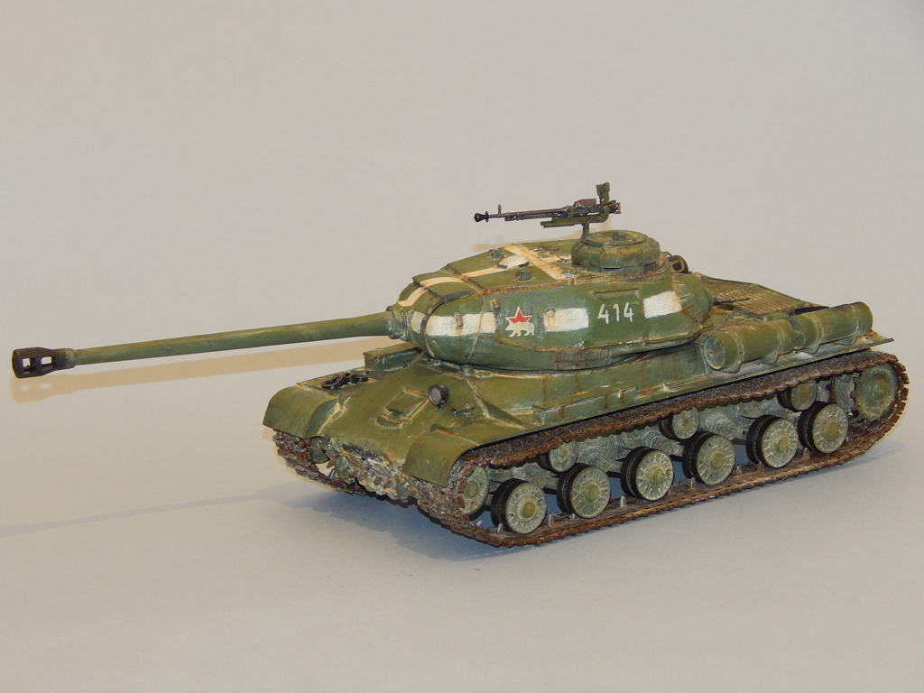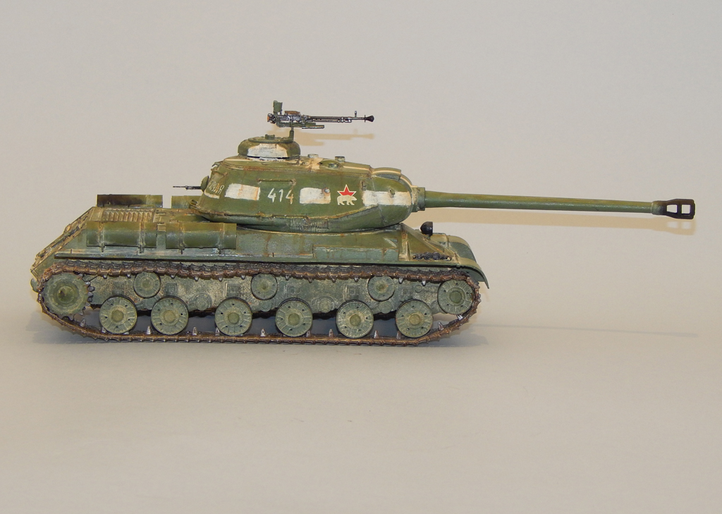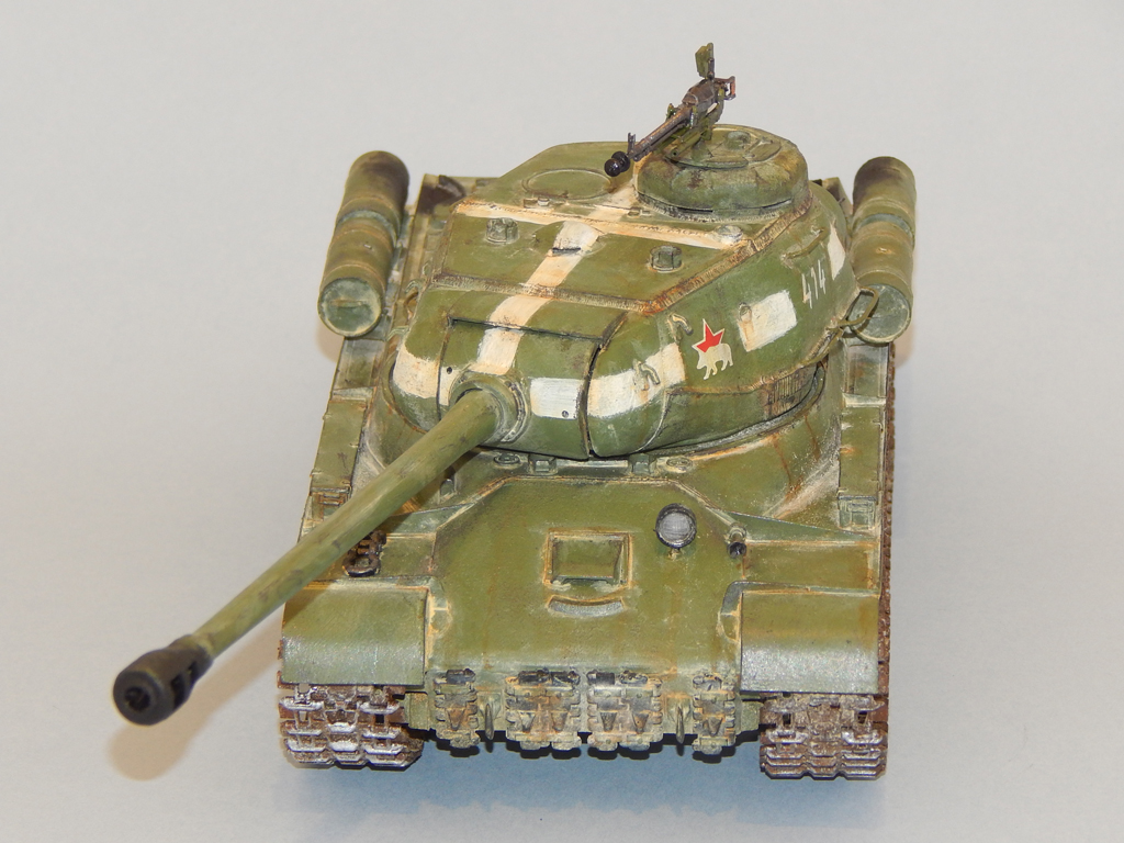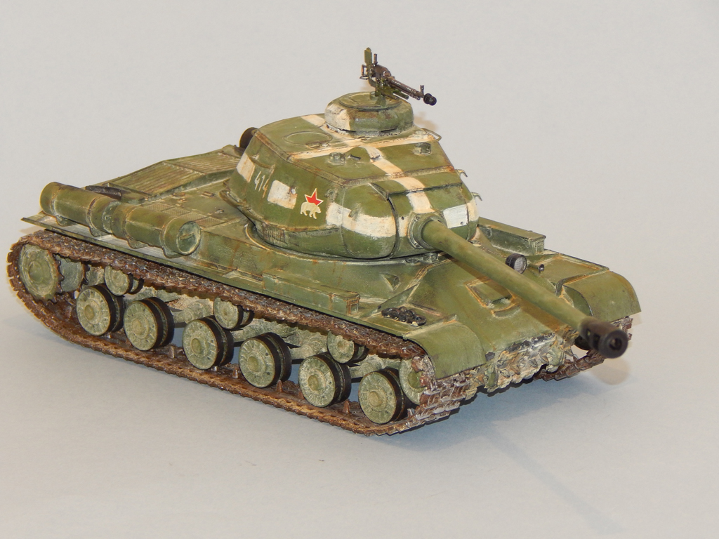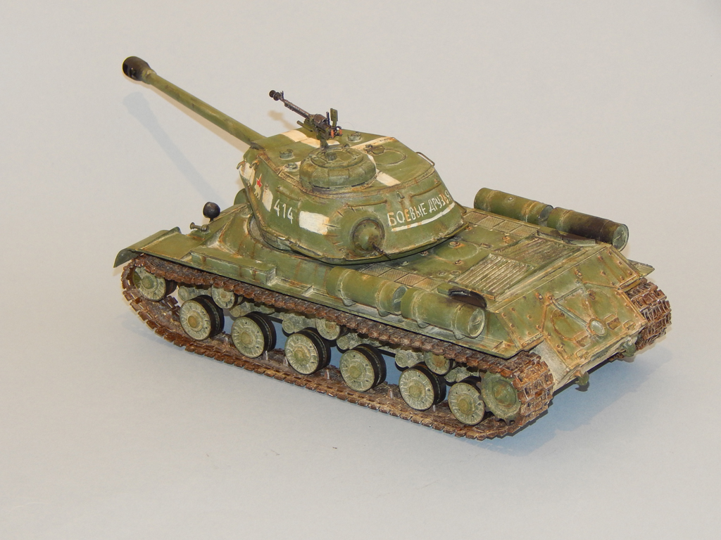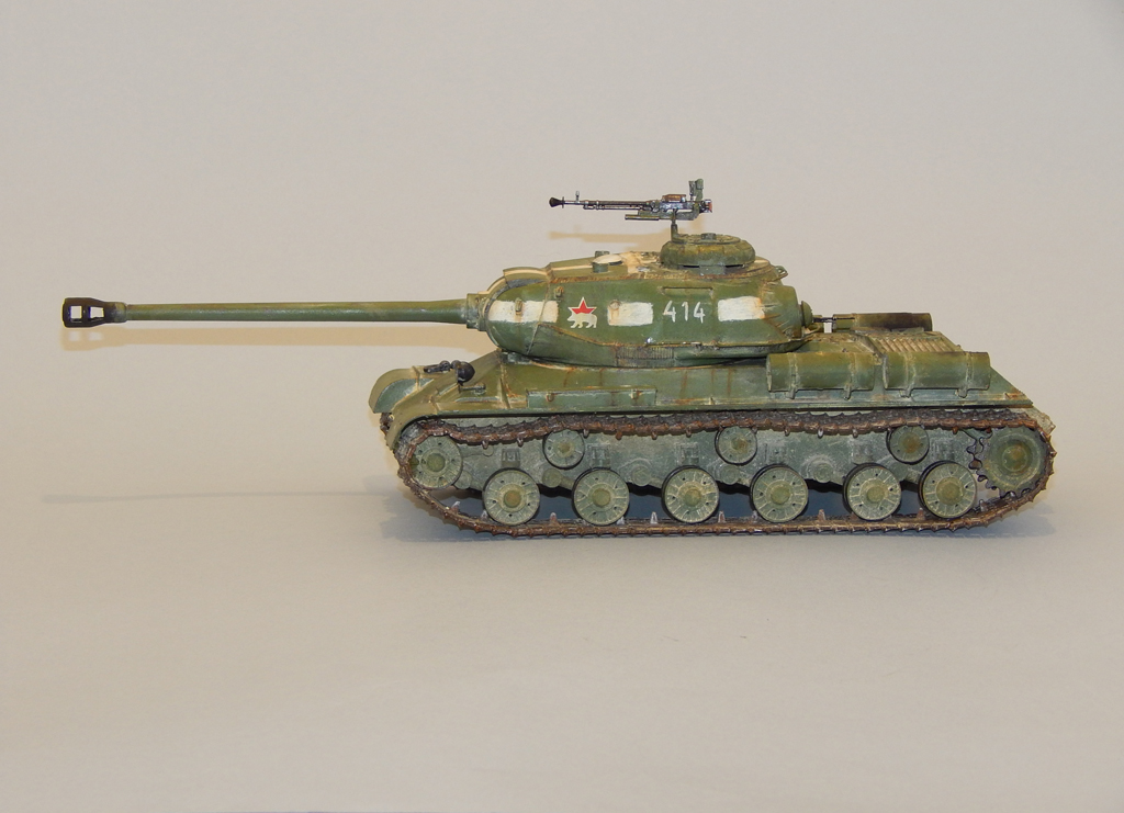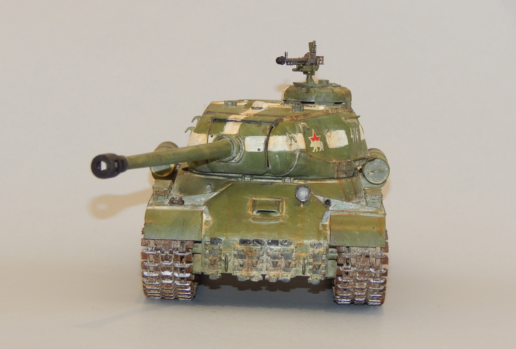 Танк окрашен акрилом, смывка, тонировка и потёки - масло, пыль - тёртый мел.