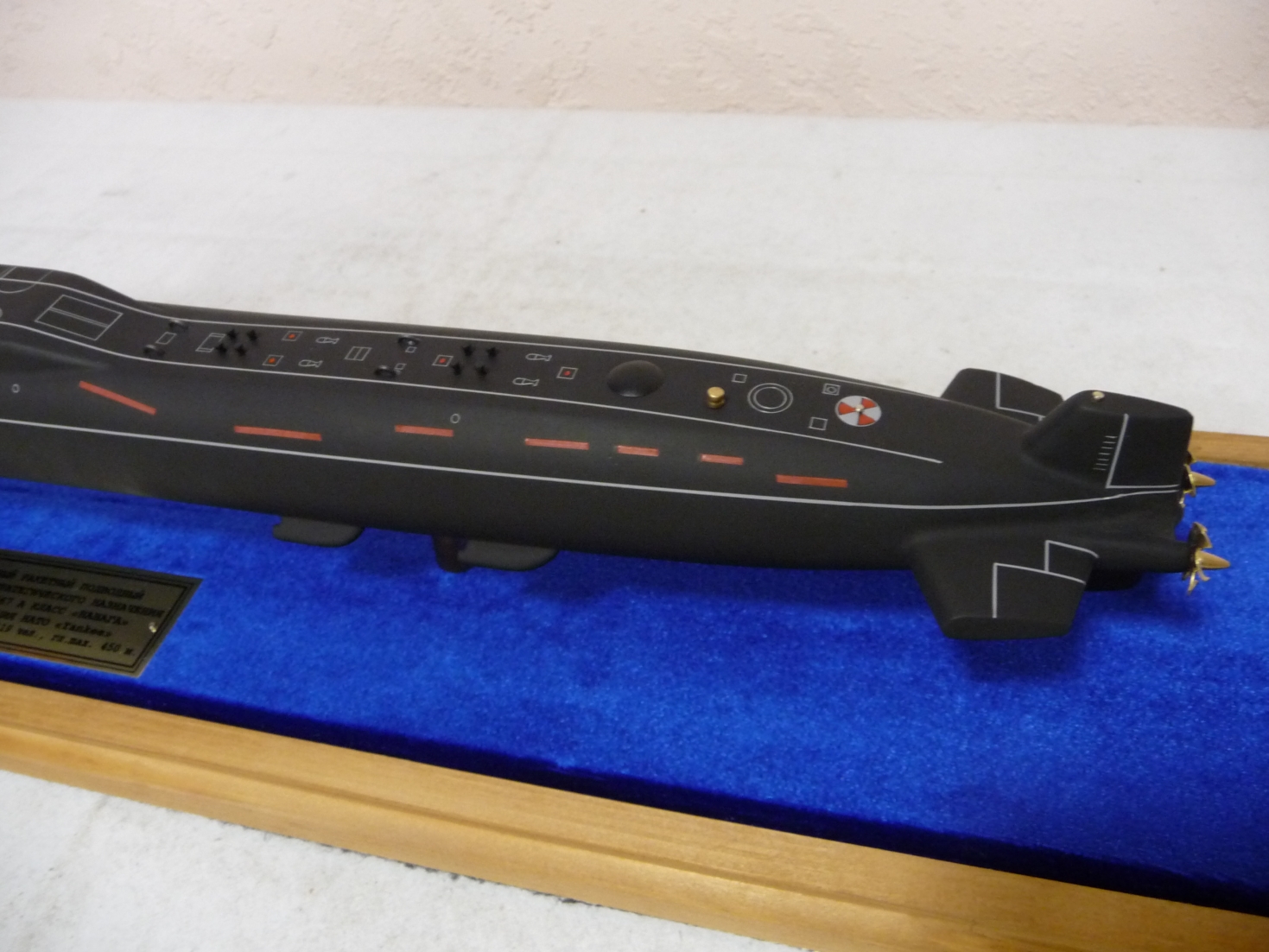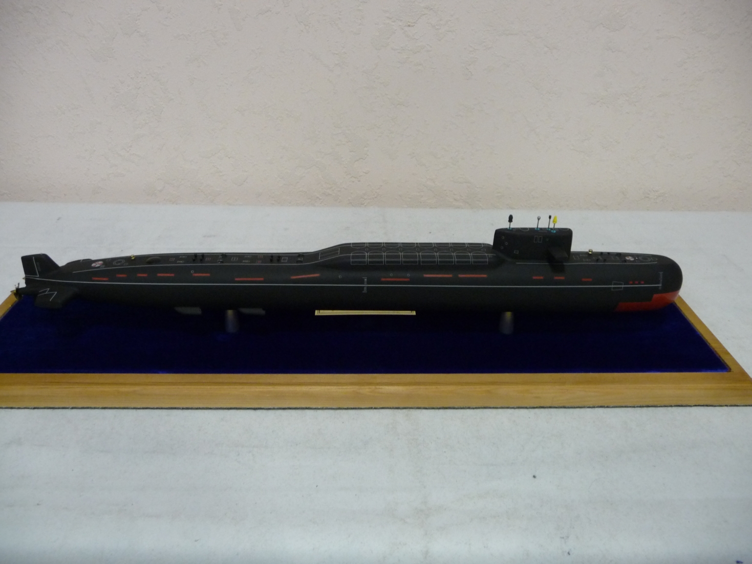 Сразу обозначу.Модель является сувенирной и не претендует на стендовую. Расчитана просто порадовать глаз. РПК СН Проект 667А "Навага".Выполнена из высокопрочной смеси "Скульптор".После обработки грунт .Я использую Motip ,но думаю можно и другие.Краска эмаль для пластика Kudo.Эмаль быстро сохнет ,но при этом отдаёт оттенком графита. Водоотталкивание равно зеро(0)На изготовление ушла примерно 1 неделя.Табличку заказывал.Внутренняя часть подставки обтянута бархатом(мне так больше нравится)Размер модели 50 см.