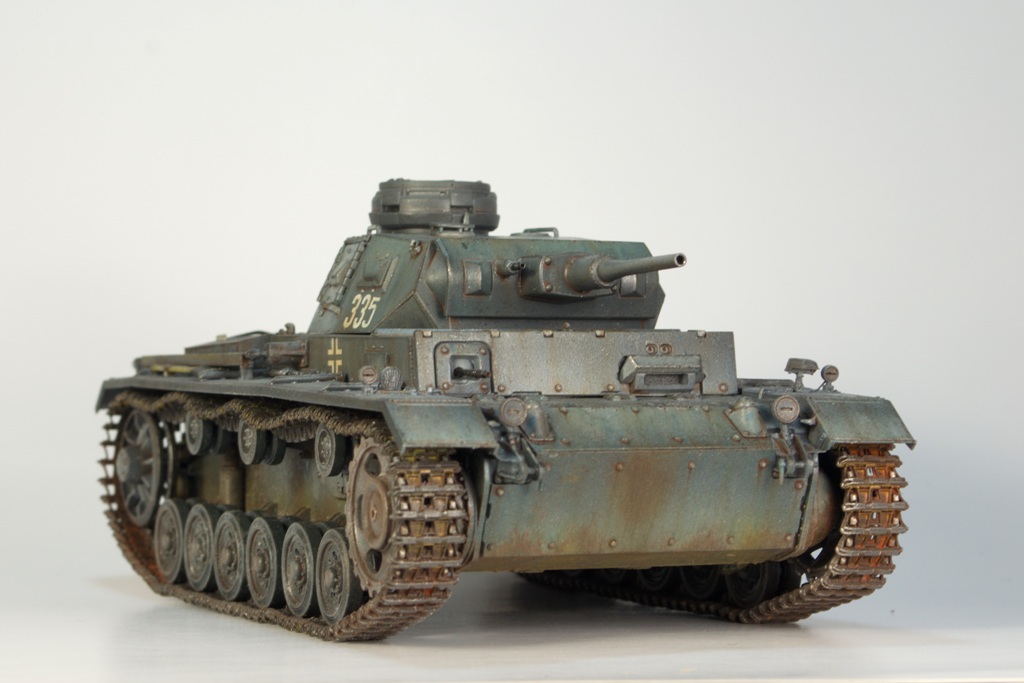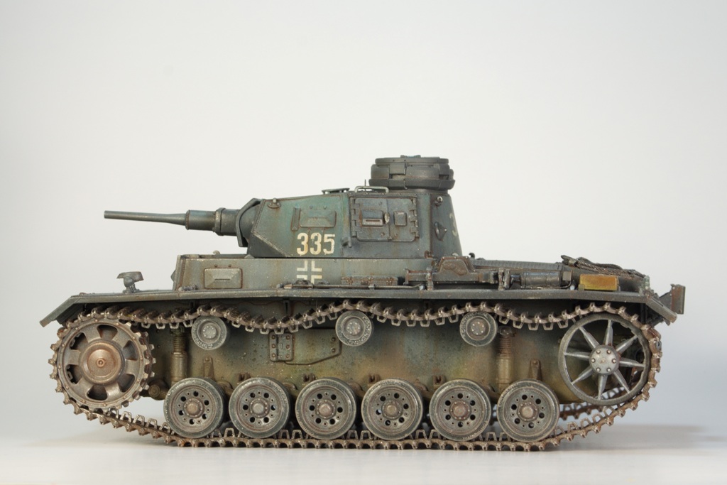 Не подумайте ничего хорошего, но к немецким тройкам я давно неравнодушен (хотя до этого собирать их не приходилось). Стараниями дорогих мне людей (за это им отдельное Спасибо), ко мне попал Кит № 6641, который подразумевает исполнение ранней версии Н. Набор, довольно интересный и приятный в сборке. Соответственно доработки незначительны, и на них я останавливаться не буду. Присутствует небольшая путаница в прилагаемых декалях. Из допов применил трос Eureka, мет. ствол для курсового пулемета Aberи смоляные ранние 400 мм траки от MasterClub. Планируется постановка на диорамку, при верстке композиции определюсь с содержанием фигур и скарба на корме и полках. В качестве прототипа нашел фото ранней машины, судя по подписи из состава 40 ОТБ. Грунтовалось, красилось и лакировалось все тамиевскими приспособами. Тонировка маслом Сонет, Эффекты и пигменты Migи Wilder. Приятного просмотра.
