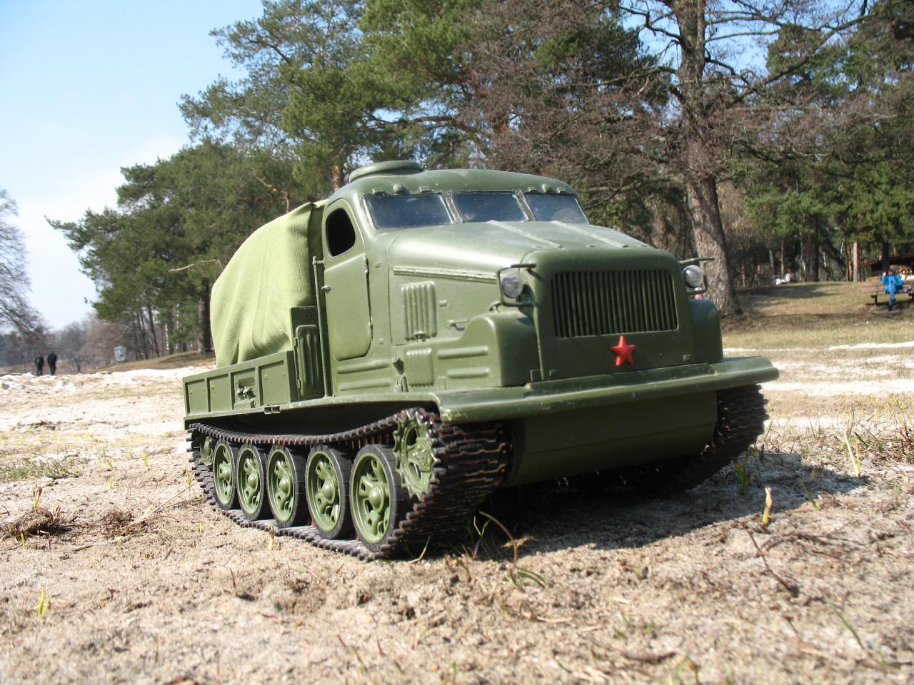 Кузов полностью самодел. Ходовка создана с использованием разных деталей 1/16: