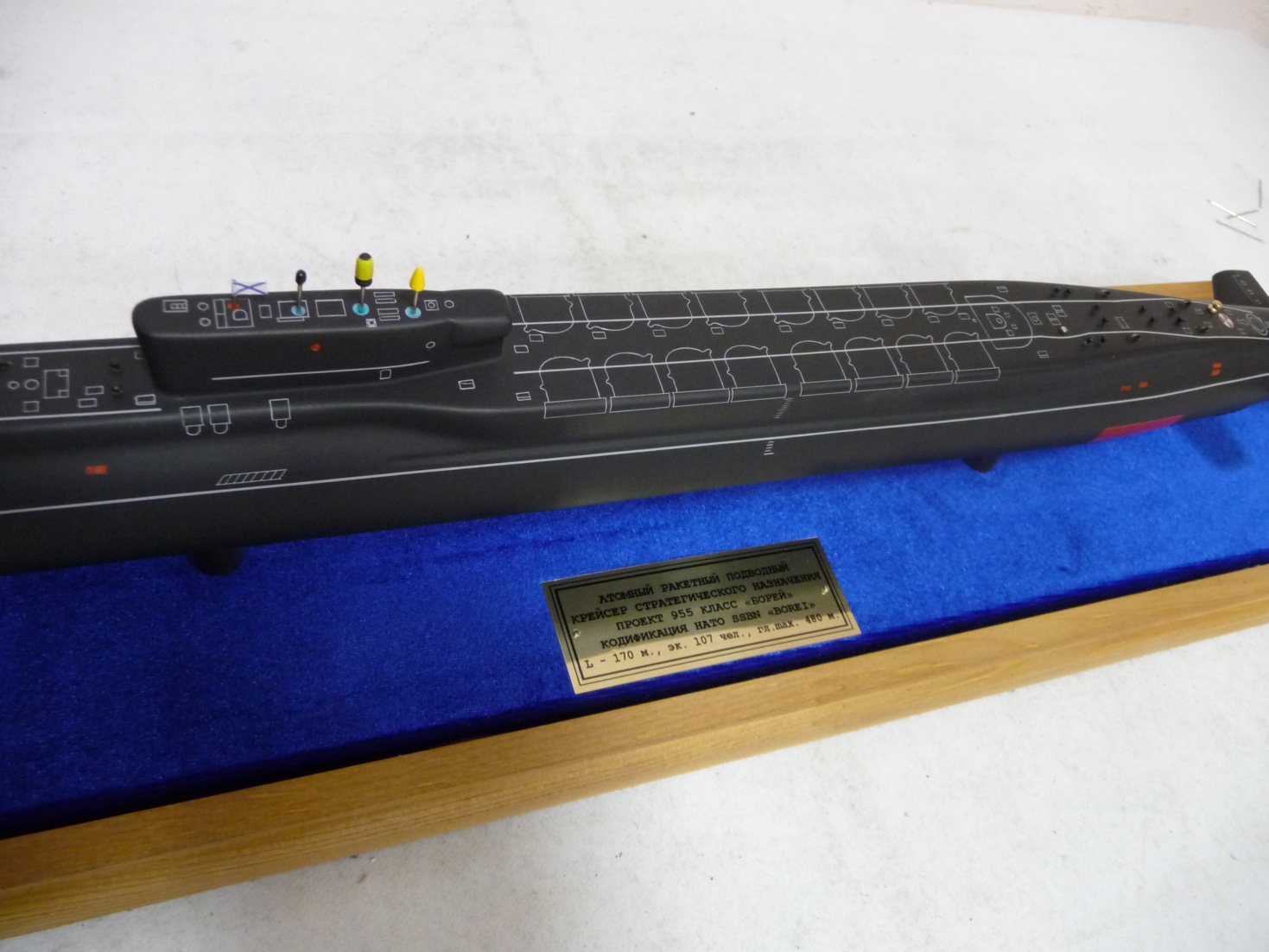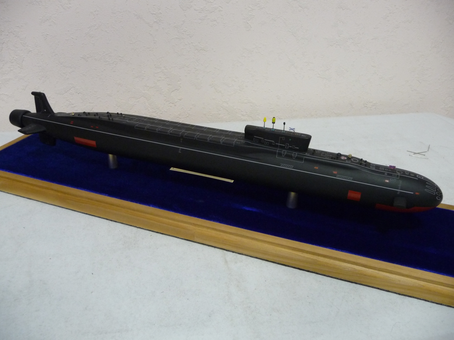 Что касается Ваших моделей. Мне нравится качество окраски и проработка тонких линий. Но (повторюсь) некоторые детали утрированно переразмерены и серьёзная работа превращается в сувенир, это на мой взгляд дилетанта. С радостью обсудил бы более конкретные несоответствия но, современным подводным флотом не увлекаюсь и сведений не имею.