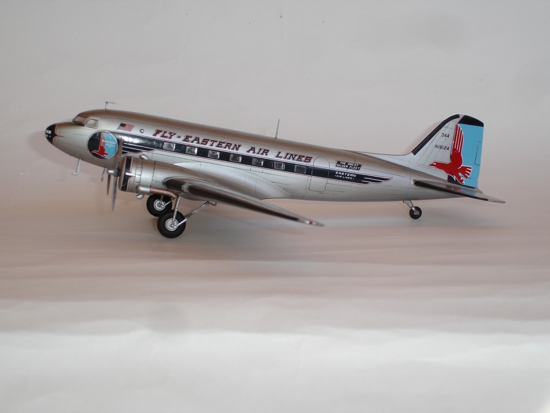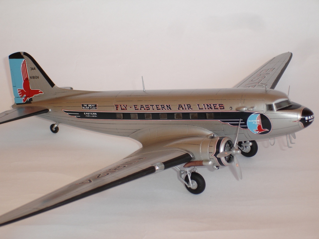 Легендарный "ДУГЛАС" DC-3 в комментариях не нуждается,как говорят, замены ему нет,в военном варианте имеет обозначение с -47,у нас производился по лицензии и получил название Ли-2.Прототипом модели стал DC-3 N18124 FLY-EASTERN-AIR-LINES,который находится в музее Авиации и Космонавтики в Вашингтоне ,это ранний вариант с двигателями