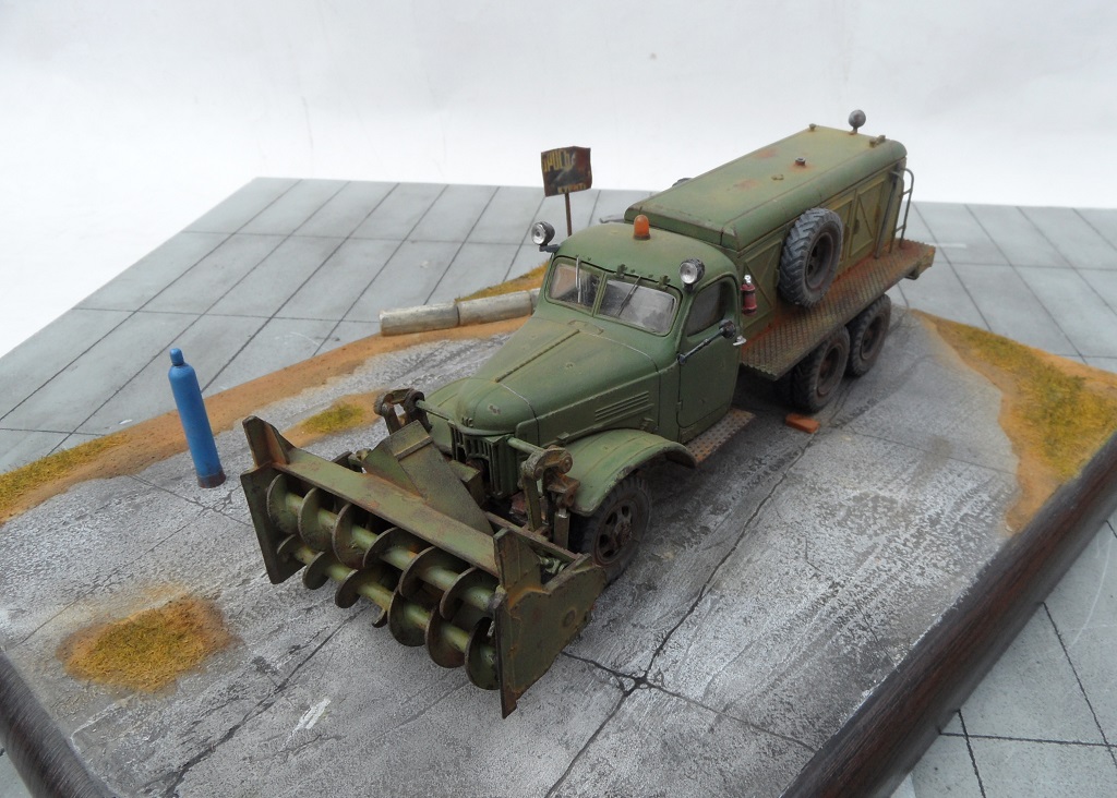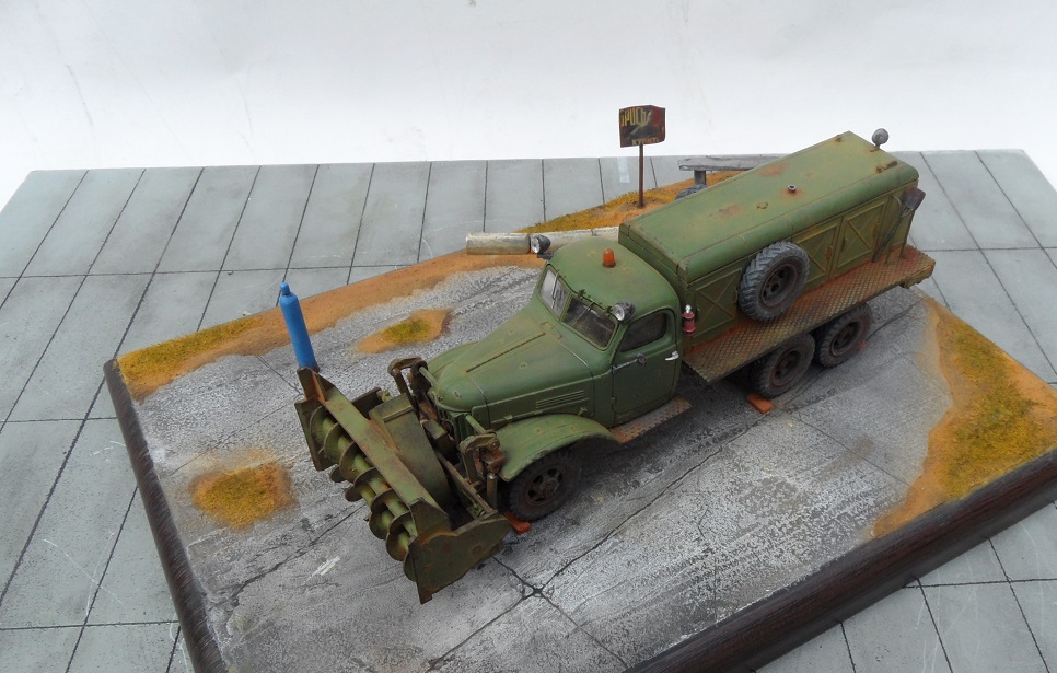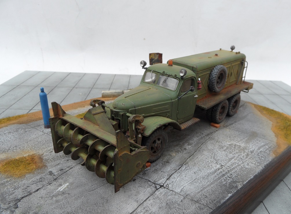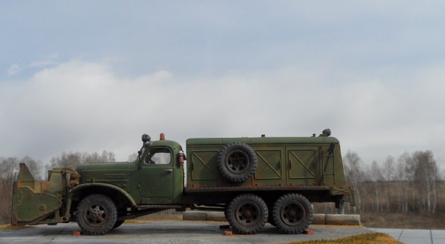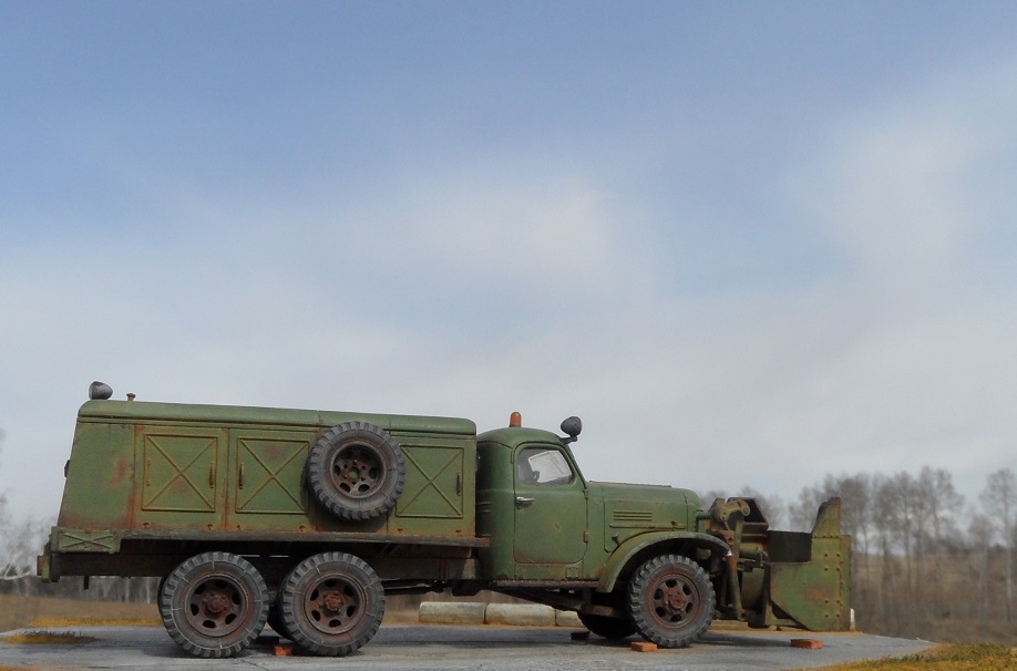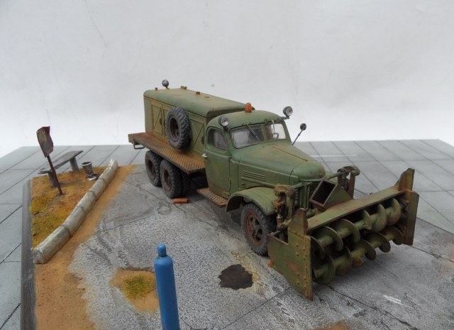 Привет всем! Представляю вашему вниманию модель шнекороторный снегоочиститель Д-262 в 43 масштабе. AVD Models постоянно расширяет ассортимент в том числе и в новом направлении- смоляное литье.Это новинка, и основная часть сделана из смолы потому детализация у модели отличная. Смолой представлена рама, шнеки, ковш, все гидроцилиндры, рама шнека, задний мост и моторный отсек . Отлито все на очень приличном уровне, смола очень хорошего качества, легко обробатывается. Интересно и то что производитель дает заднюю лестницу из металла, потому нет риска сломать хрупкую деталь при перемещении модели. Остальное а именно-кабина металл, диски и передний мост пластик, резина-резина в общем все стандартно. В наборе идут травленые дворники. Собиралась модель несложно, спасибо AVD Models за новую очень понятную инструкцию! Из доработок мигалка на крыше, задние катафоты и фара заднего хода . Окрашена эмалью Мотип Хаки, тонирована кистью, пигментами. В качестве антуража использовал смоляные дополнения от AVD Models- кислородный баллон, урна и лопата . Конечно такая техника логичнее смотрелась бы в снегу, но у нас уже весна полным ходом, потому пусть стоит на приколе).Приятного просмотра!