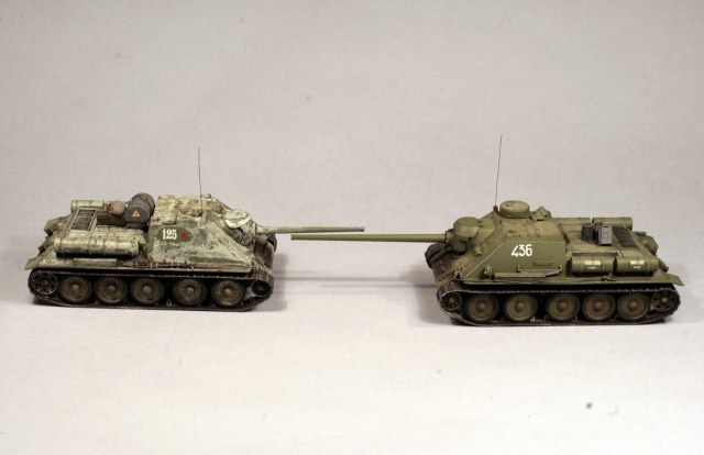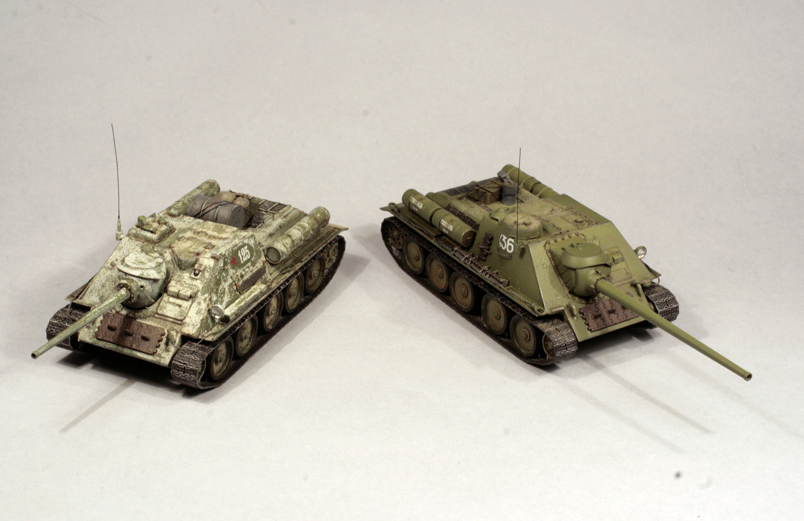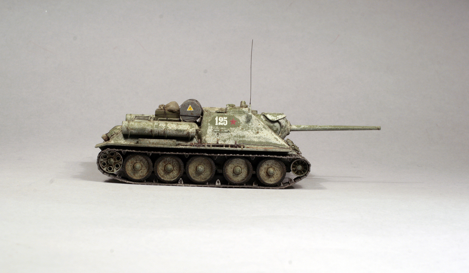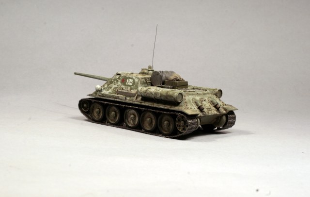 Модель от этой китайской фирмы представляет из себя очень неплохую модель и не смотря на упрощенную ходовую часть(большая часть траков отлита зацело с задним рядом катков и не имеет рельефа с внутренней стороны) является лучшей моделью Су-85 в масштабе 1/72, превосходя аналоги от UM и Моделиста.