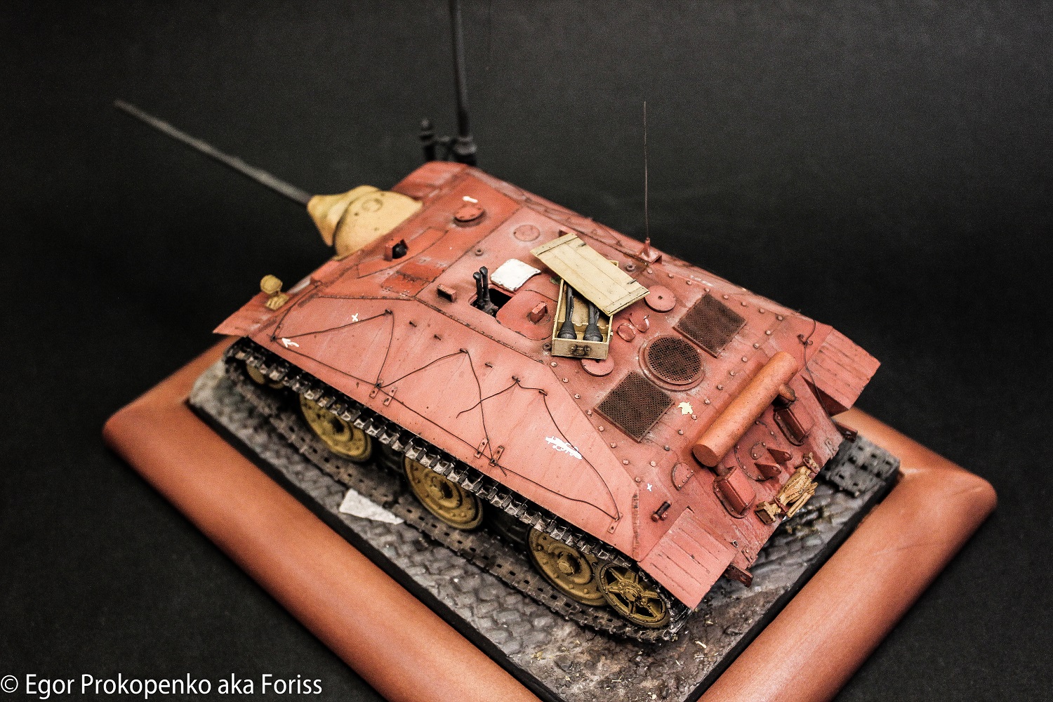 Спасибо за внимание, коллеги! Как верно заметил Антон выше, экипаж использовал проволоку на бортах в качестве дополнительного крепления для маскирующих элементов - ветки, палки, как-то видел фото на которых были намотаны какие-то тряпки (видимо, для боев в городских условиях). Решил попробовать изобразить просто проволоку на бортах, на тряпки не решился))