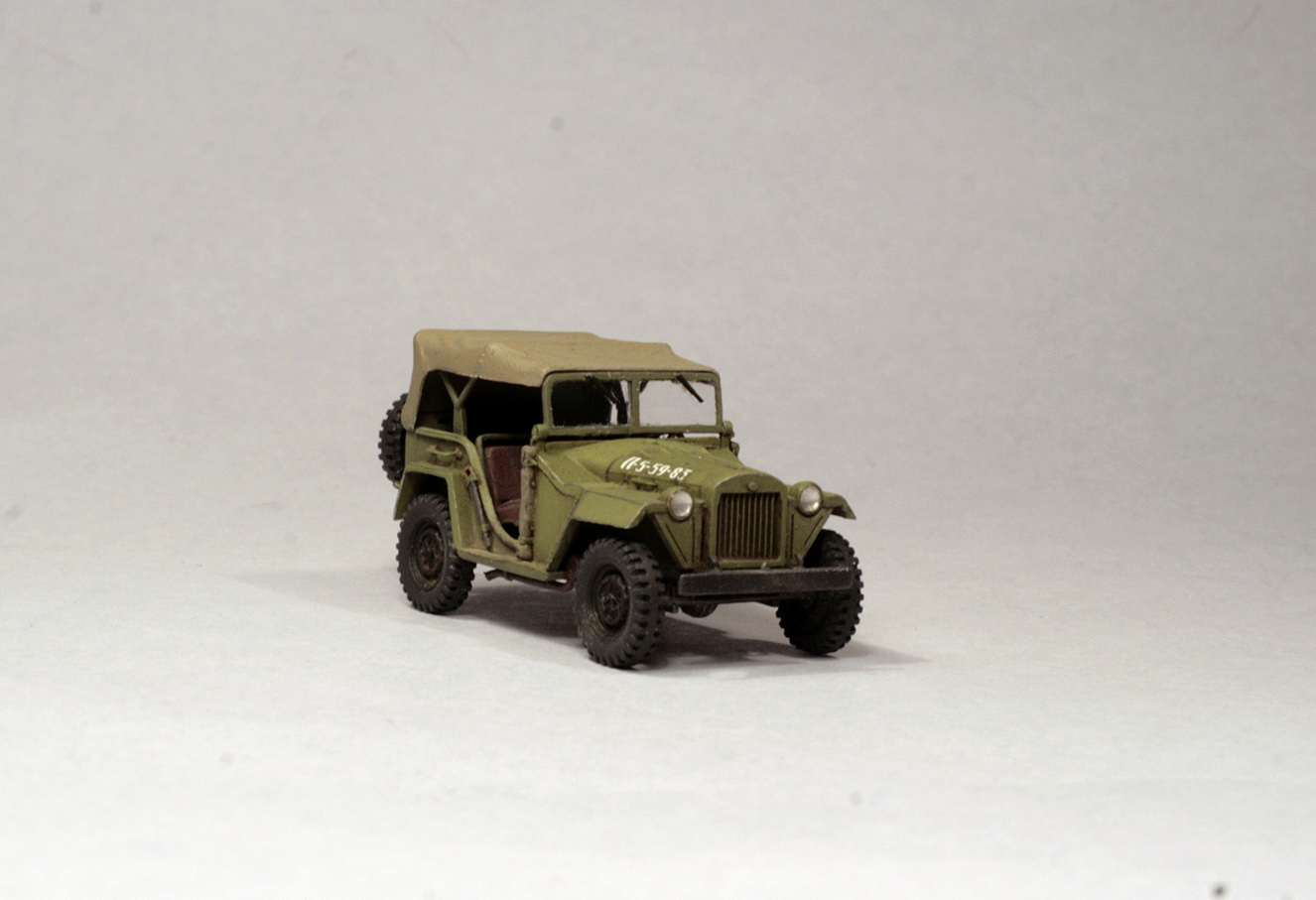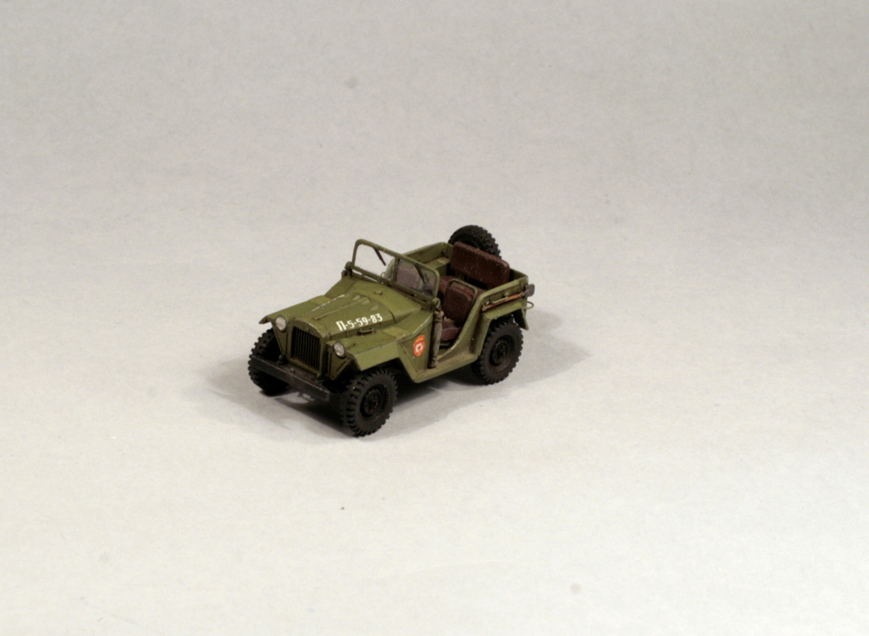 Этот советский полноприводный легкий внедорожник стал первым массовым советским джипом. Простота конструкции, общие агрегаты с Газ-М, хорошая проходимость и надежность были сильными чертами этой машины. Правда по настоящему массовым он стал только после войны, так как в военное время приоритет отдавался бронеавтомобилю Ба-64, созданному на той же базе. Более подробное описание машины можно найти на Википедии.