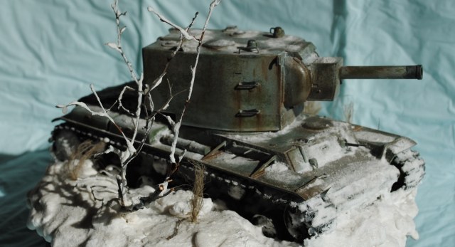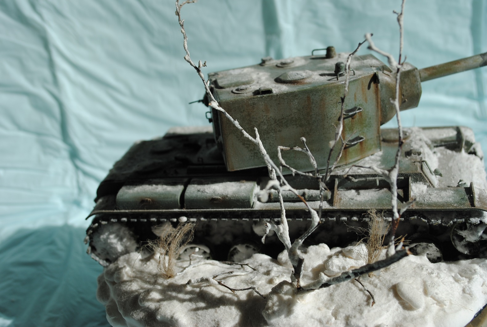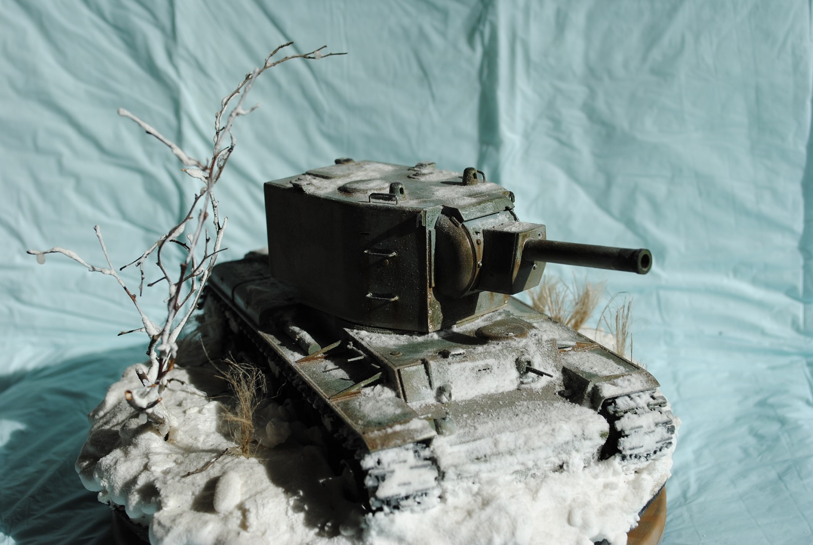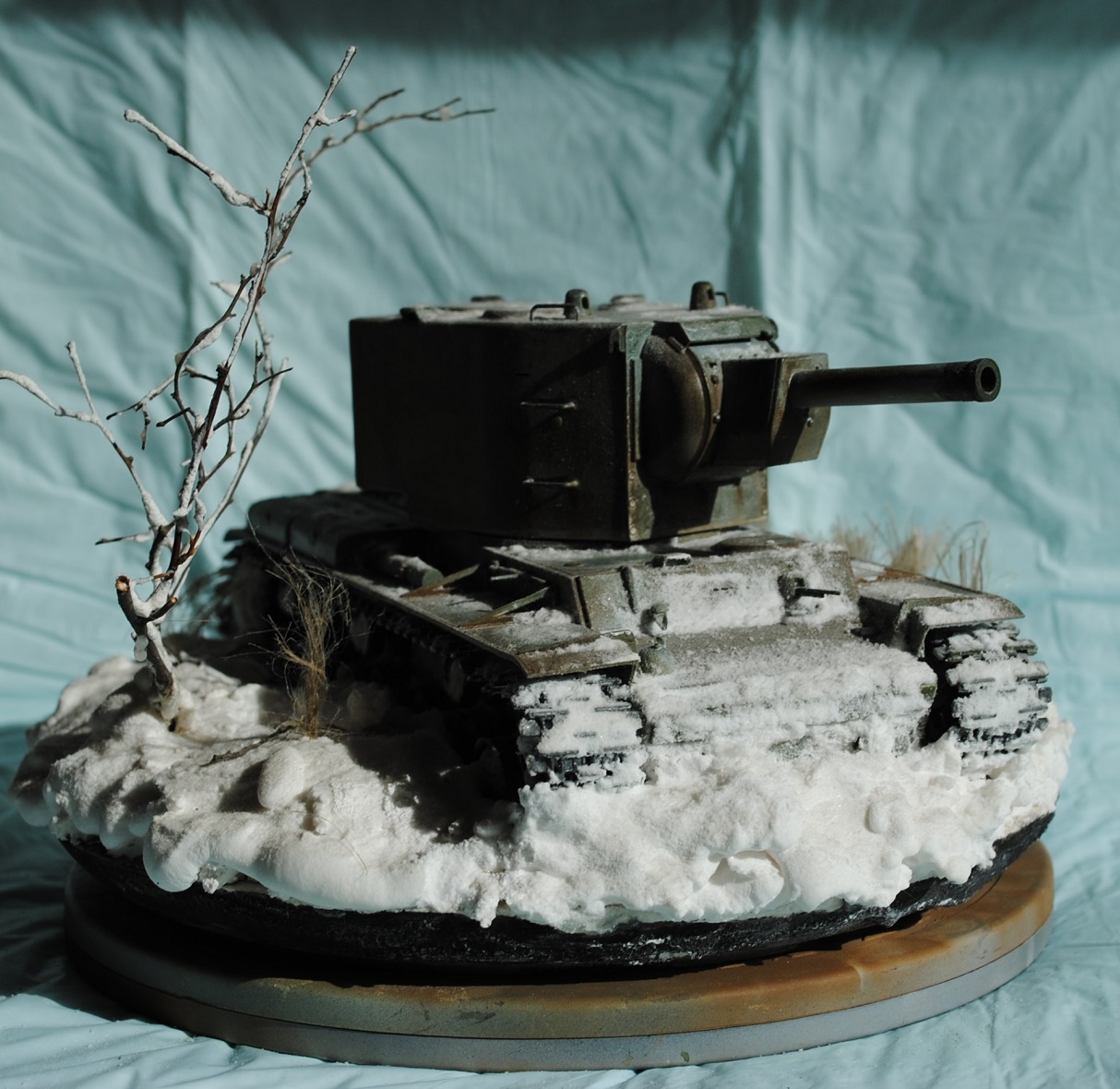 Здравствуйте друзья. Пробую себя в моделировании. Моя первая диорама. Нет привязки ни к чему. Просто изобразил КВ-2 зимой.