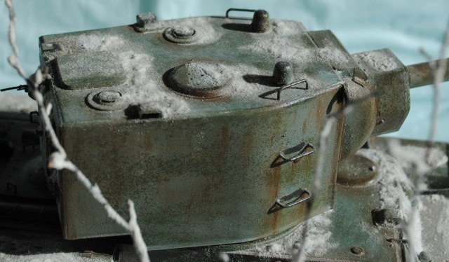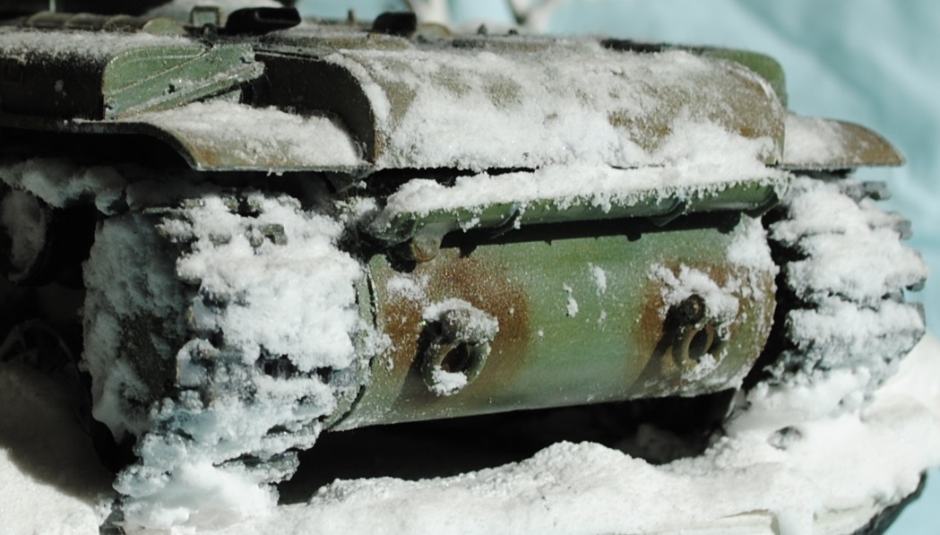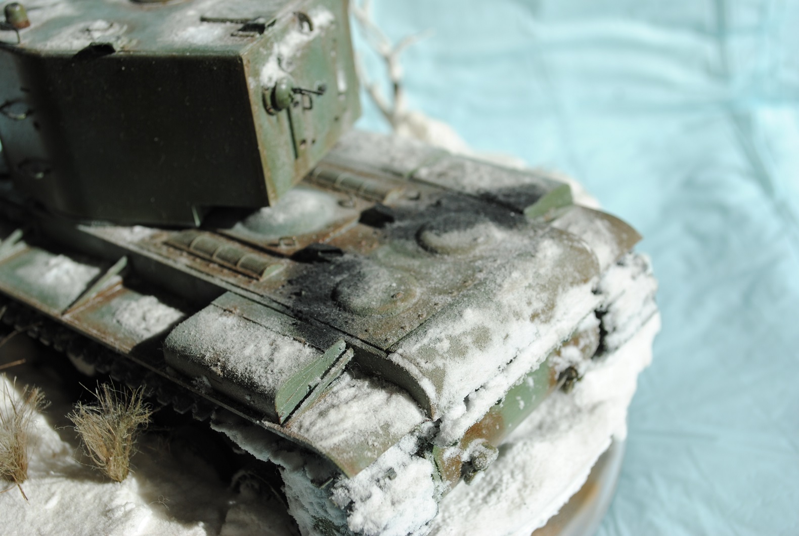 Впечатления по первой фото, что модель стоит на домашнем торте (шутка юмора). Серьезно: для такого гиганта подставка мала. Зимняя атмосфера удалась. По танку коллеги уже сказали.