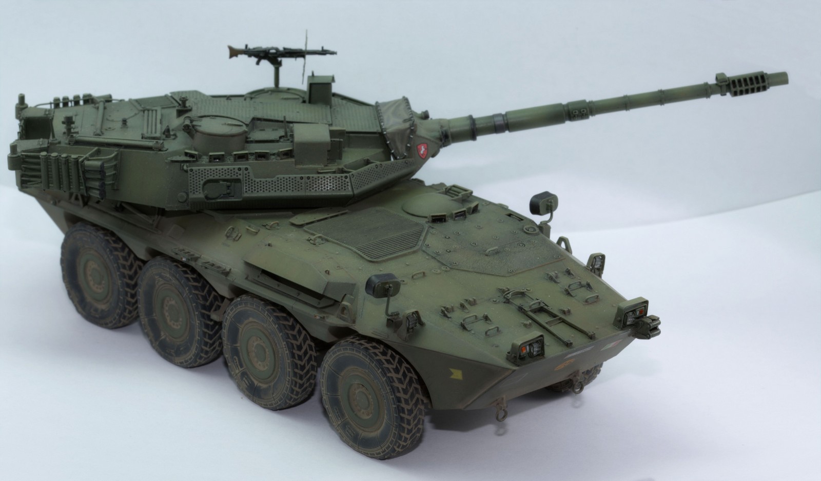 Многие наверное уже делали эту модель, вроде ни у кого нареканий по сборке не возникало. Не было их и у меня. Все легко просто собиралось, сам пластик по времени сборки занял, пожалуй, процентов 20. Остальное время, это работа с фототравлеными деталями от вояджера. Особая сложность была с заменой на проволочные детали корзины и их соосность-сгибание. Дымовые гранаты брал из отдельного набора, также вояджера, но они нормально не вставали на место, что то с размерами, на них так же потратил много времени. Колеса смоляные от E.T. Model с имитацией загруженности. Дуло пулемета срезал (оно было овальное) и выдавил новое на зубочистке из доширака.