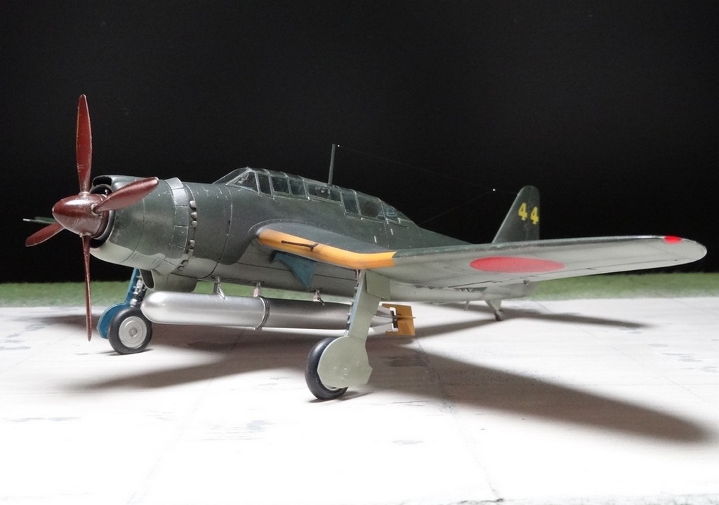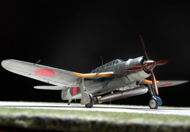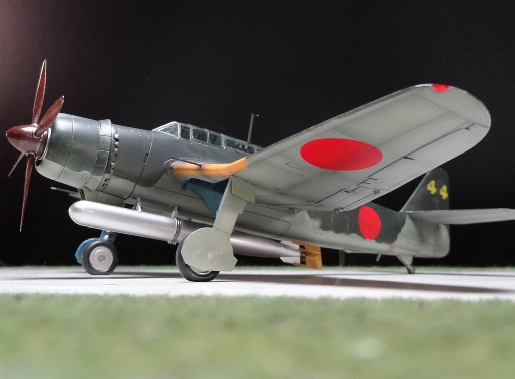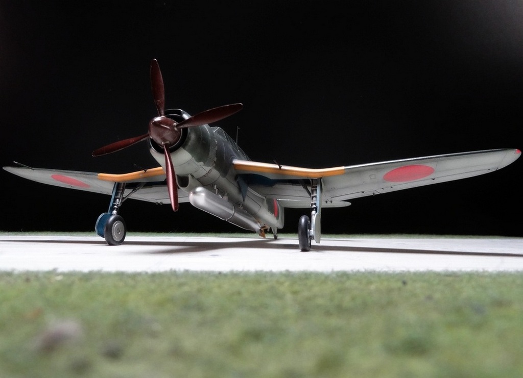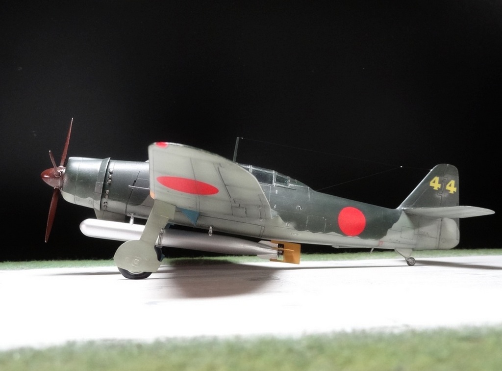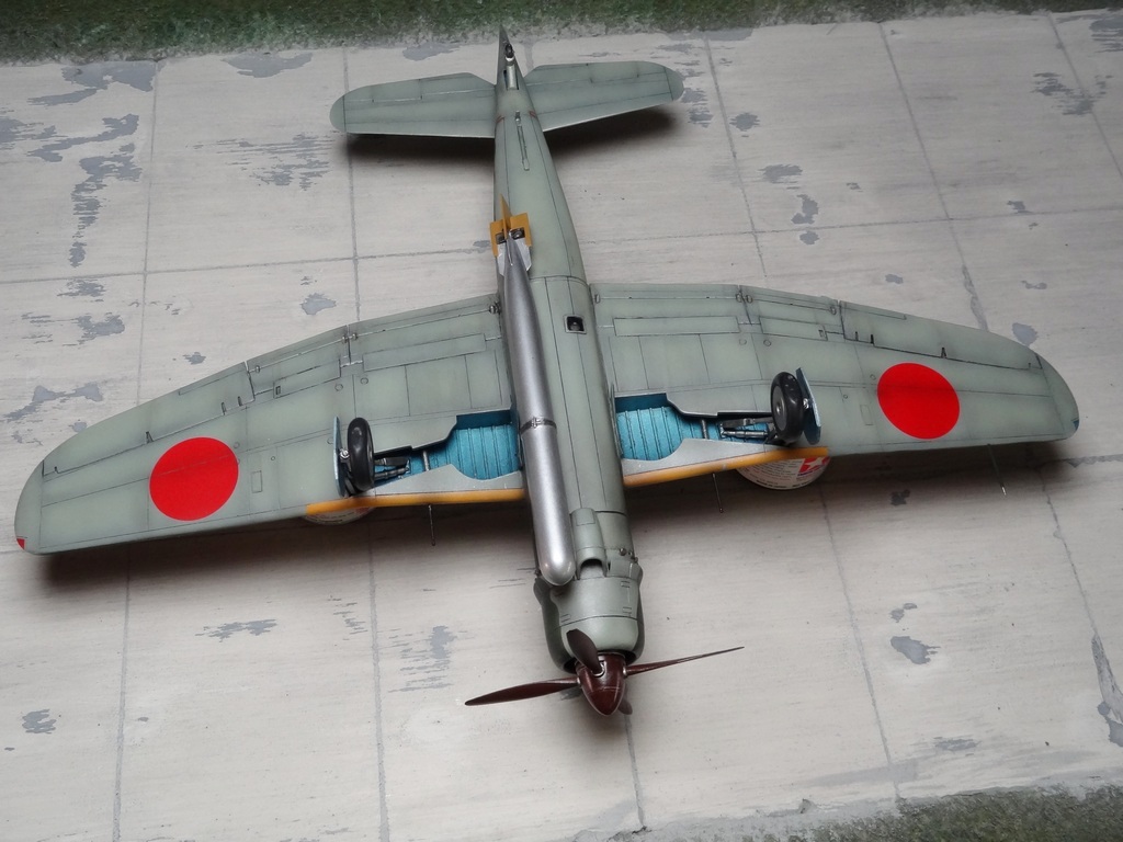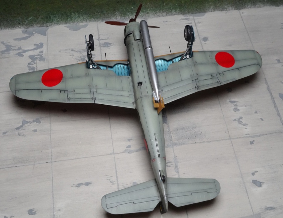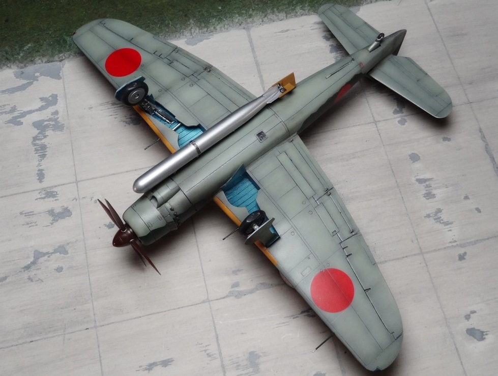 Сам кит абсолютно нормальный, без облоя, с нормальной стыковкой. Красили и верх, и низ Tamiya, сделали прешейдинг, глянцевый лак Future, смывка Mig и матовый лак Pacific 88. Немного нагара, обдиринга.