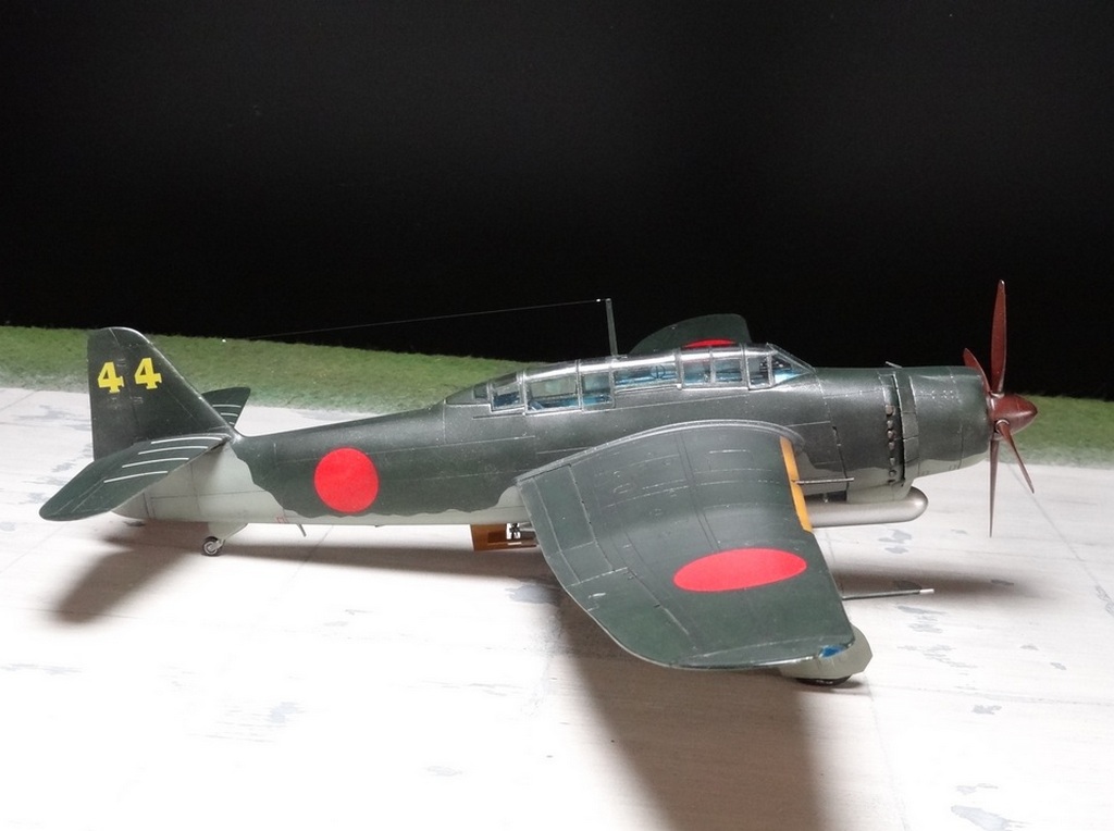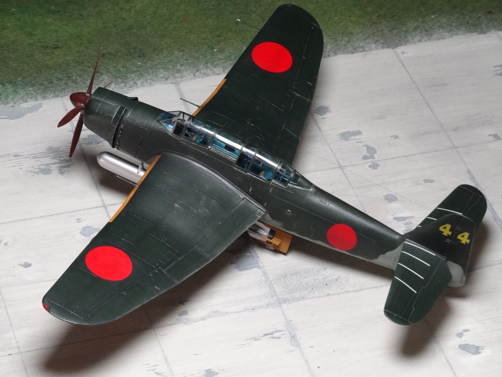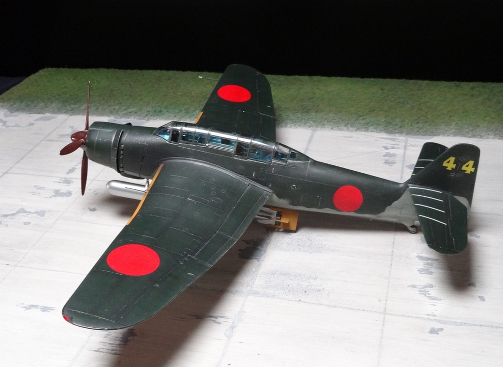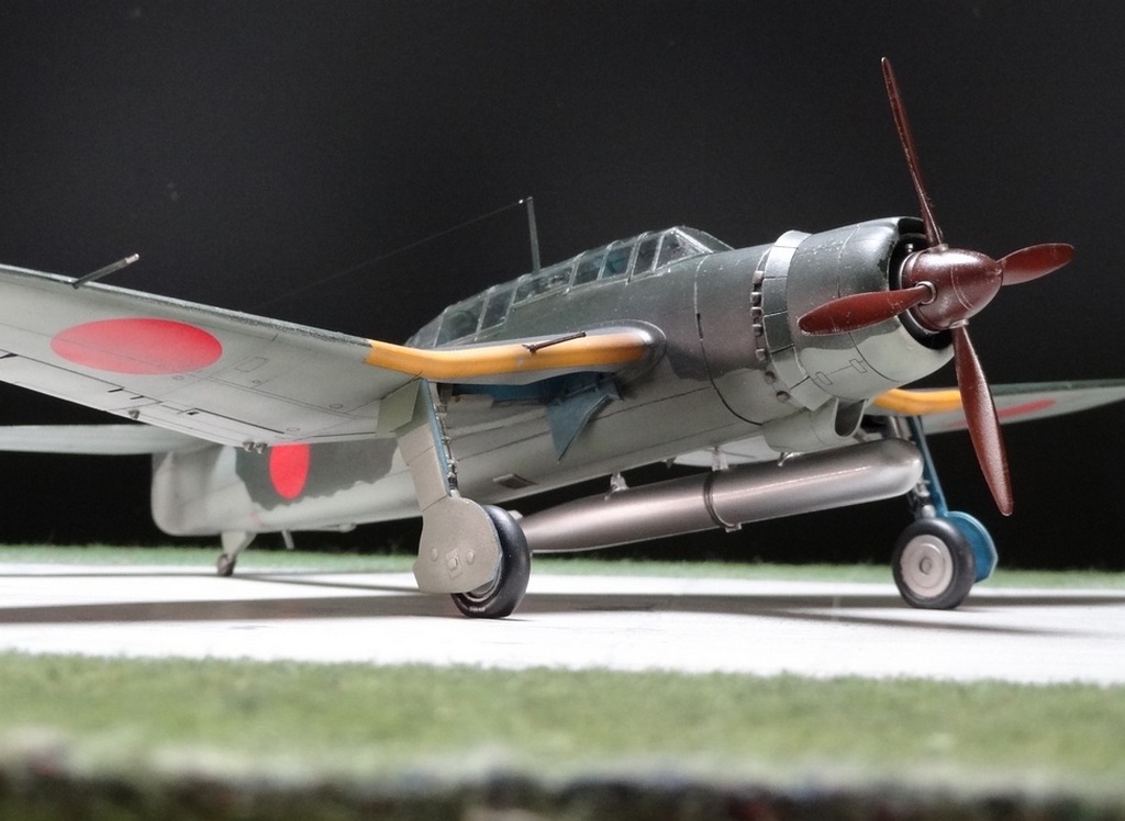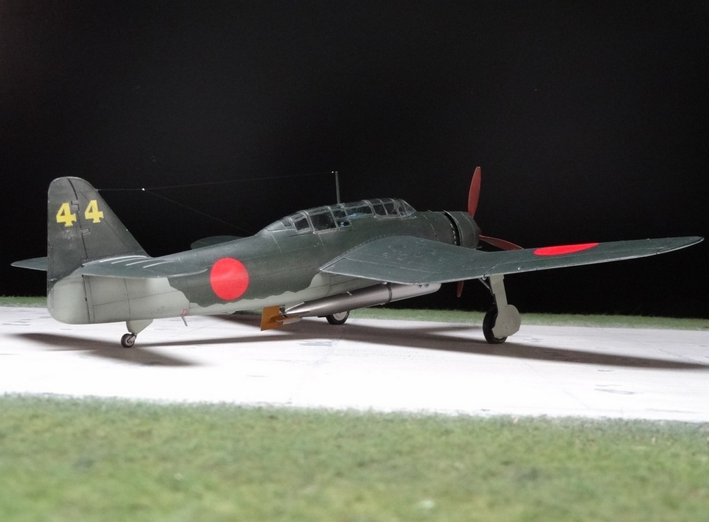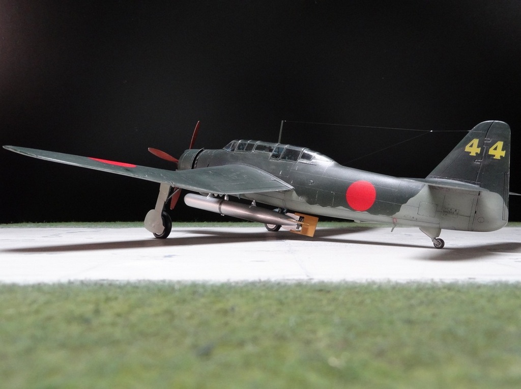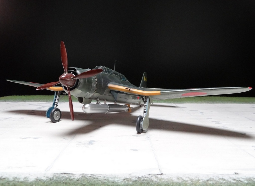 Сам кит абсолютно нормальный, без облоя, с нормальной стыковкой. Красили и верх, и низ Tamiya, сделали прешейдинг, глянцевый лак Future, смывка Mig и матовый лак Pacific 88. Немного нагара, обдиринга.