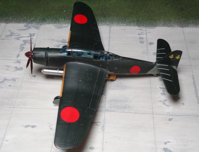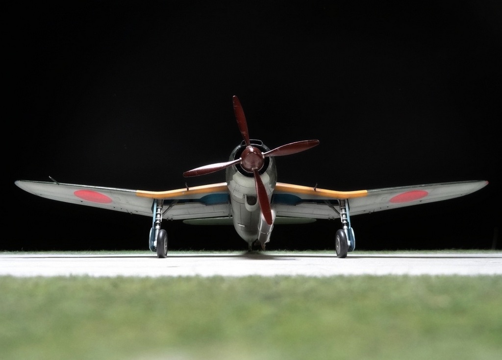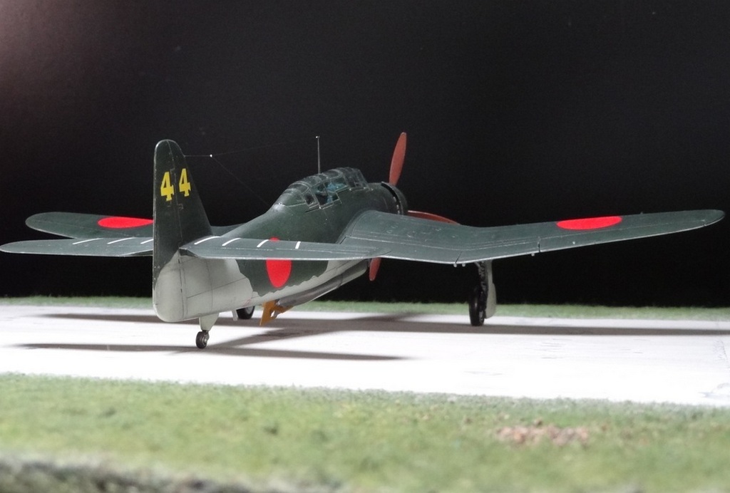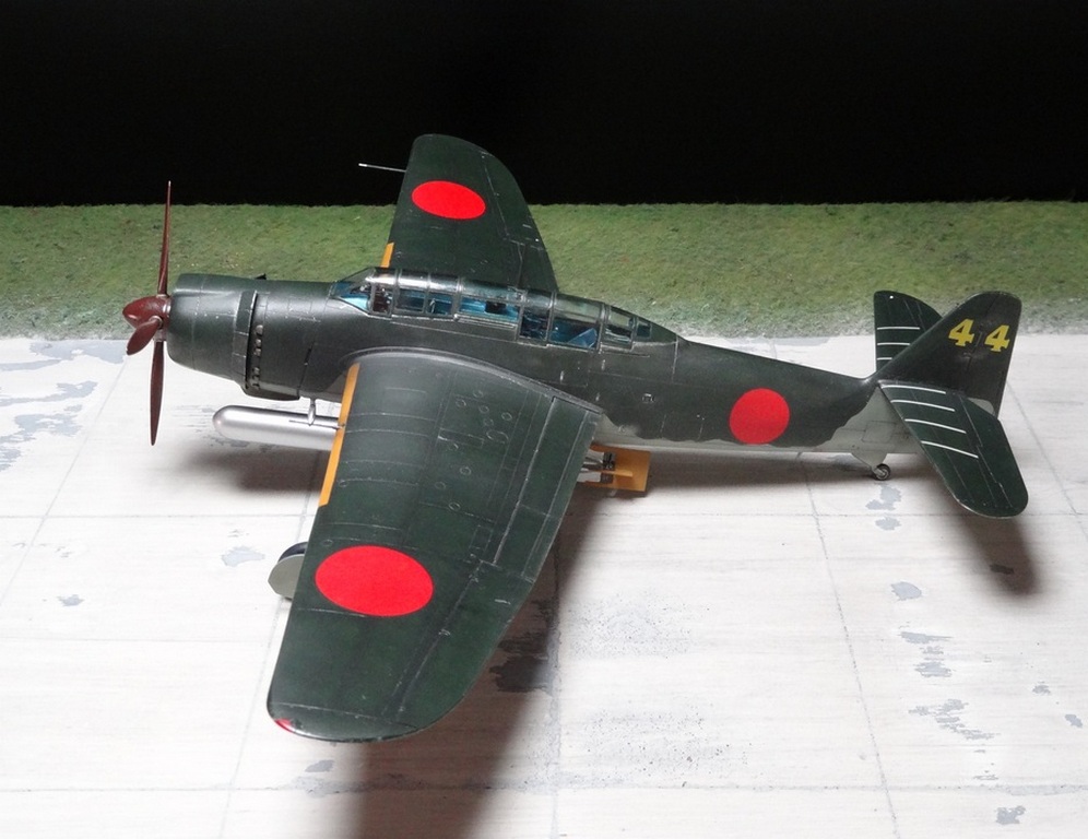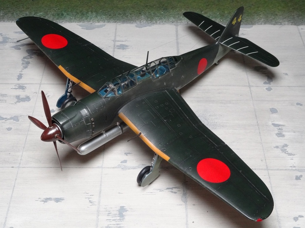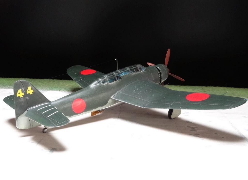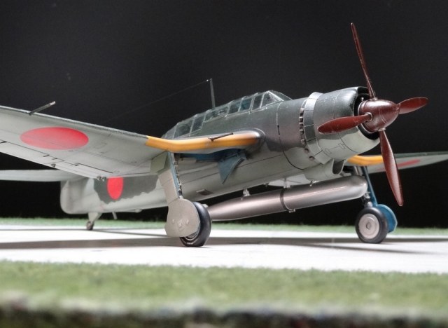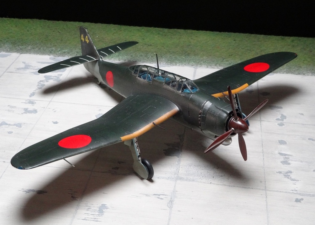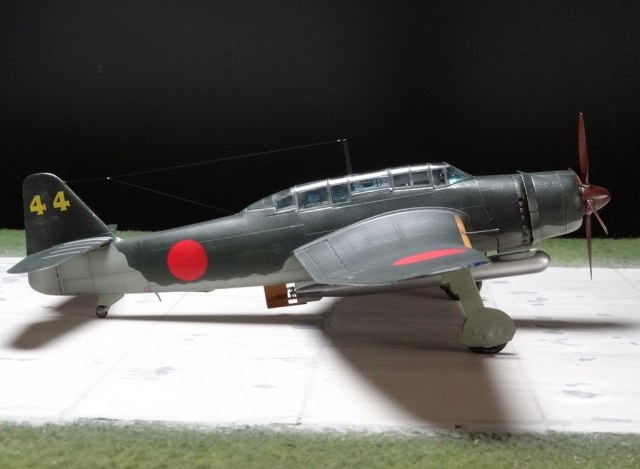 Сам кит абсолютно нормальный, без облоя, с нормальной стыковкой. Красили и верх, и низ Tamiya, сделали прешейдинг, глянцевый лак Future, смывка Mig и матовый лак Pacific 88. Немного нагара, обдиринга.