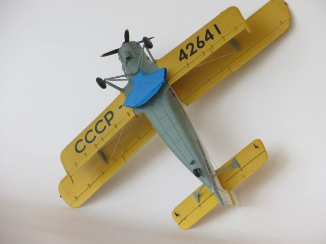 Модель собиралась из двух разбитых ранее собранных моделей.Сделаны: кок винта,капот,РТШ,киль,предкрылки на нижнем крыле обтекатели и тяги закрылок.Колеса от "ЭКИПАЖ"Декаль от Бацких .Красил TAMIYA.