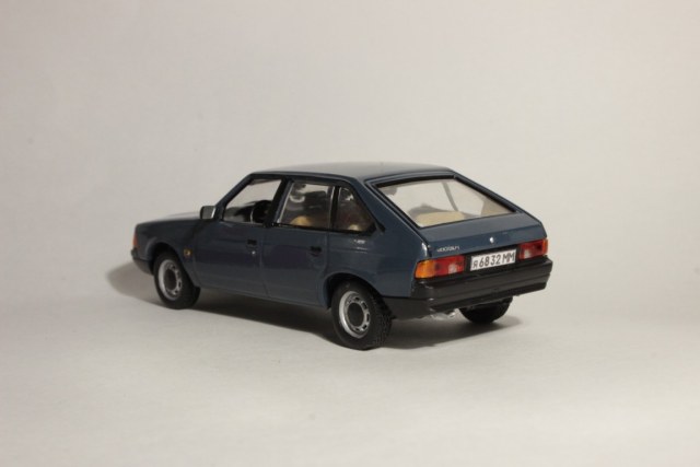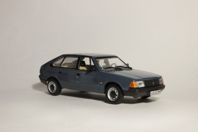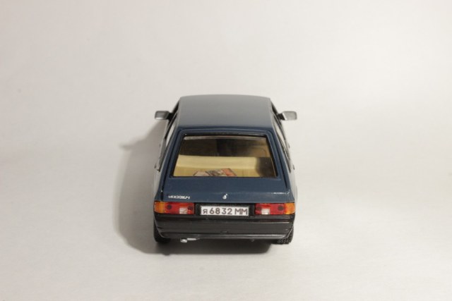 Очень долго ездил на этих автомобилях, позволю себе некоторые коментарии к модели. Я не буду спорить о цвете, в разных источниках- разная информация, но больше склоняюсь, что у вас правильный цвет.Могу сказать из опыта, что всегда на "фирменных" москвичевских колпаках стоял заводской логотип, даже если не с завода, а купленные эти самые колпаки где-нибудь на рынке. Небольшой нюанс по повторителю поворота на переднем крыле: на машинах выпуска до 1991 года он был больше смещен к капоту. Отдельно хотел остановиться на цвете салона. Такой гаммы как на вашей машине я не встречал никогда.Вообще цвет был не светло-бежевый, а более темнее, кофе с молоком что ли, и в этом случае торпедо была такого же цвета с черной накладкой, но ни как не серая. Лично у меня был салон серого цвета, черная торпедо и серая же накладка, которую потом заменил на черную (начала трескаться). Думаю, тут есть небольшое несоответствие.