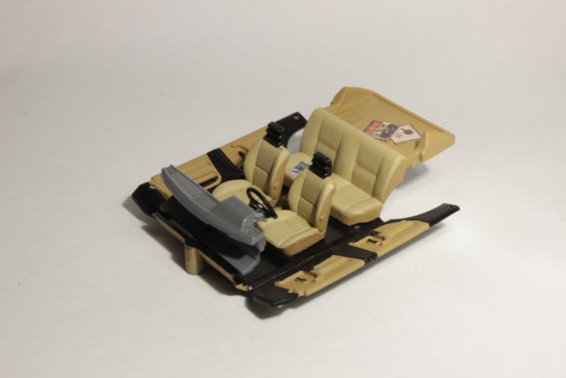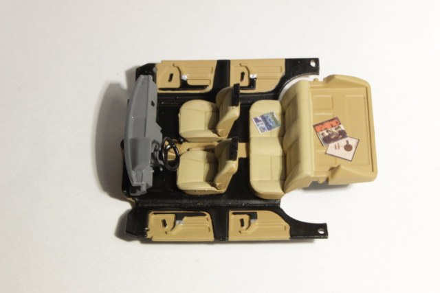 Салон в светлых тонах, на задней полке виниловые пластинки группы "КИНО", на заднем диване журнал "За рулем" за 1989 год; восстановлен шильдик на двери багажника; фонари раскрашены; донышко так же немного оживил.
