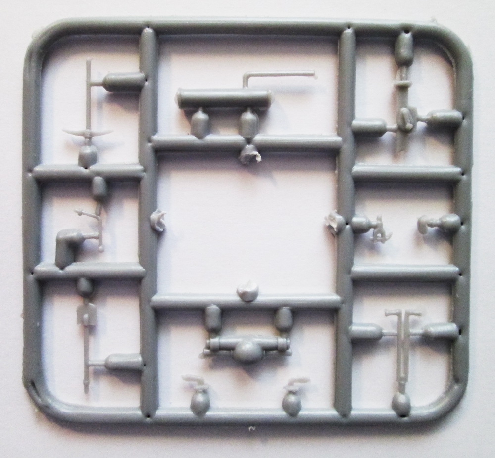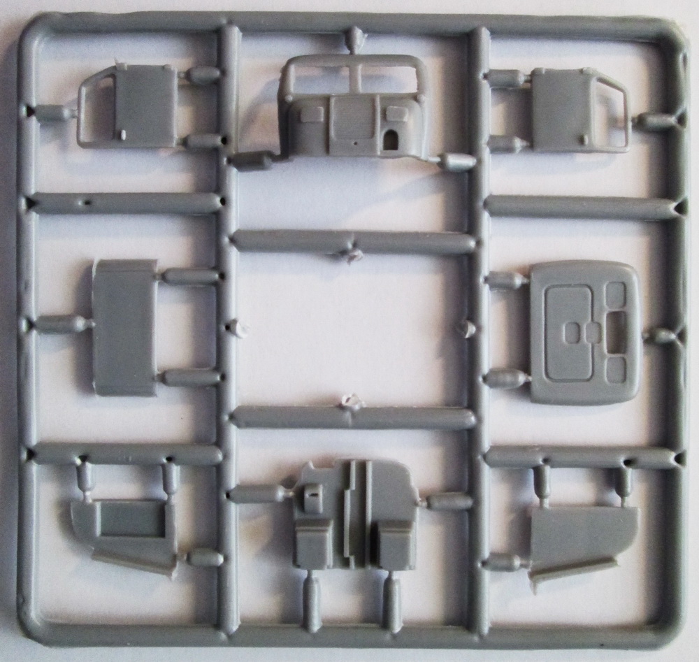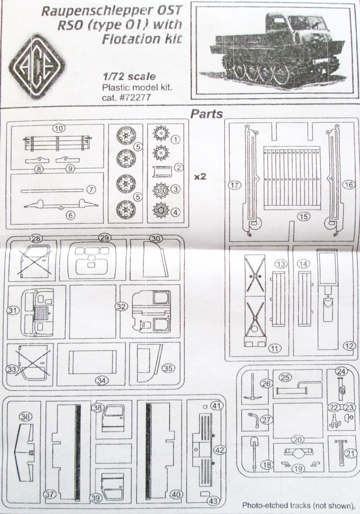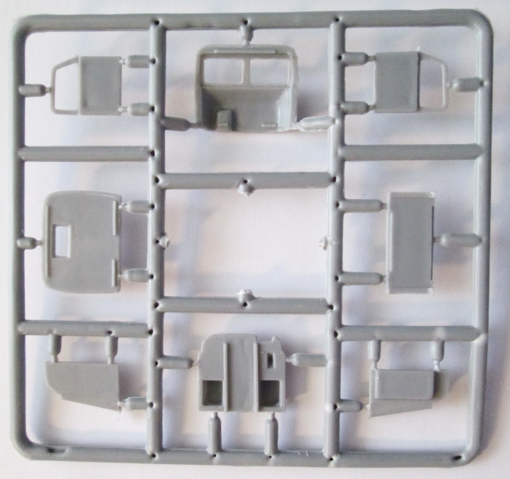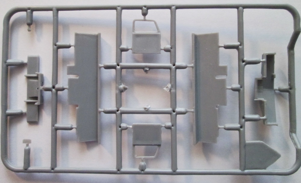 Коробка из мягкого картона с верхним операционным доступом. При осмотре внутренностей обнаружились 6 литников из светло-серого полистирола (одна – продублирована), плата травления (гусеницы), небольшой листочек декали очень достойного качества и мануал по сборке. Стекол (как и иных прозрачных образований) не предусмотрено, но они плоские, и сделать не проблема.