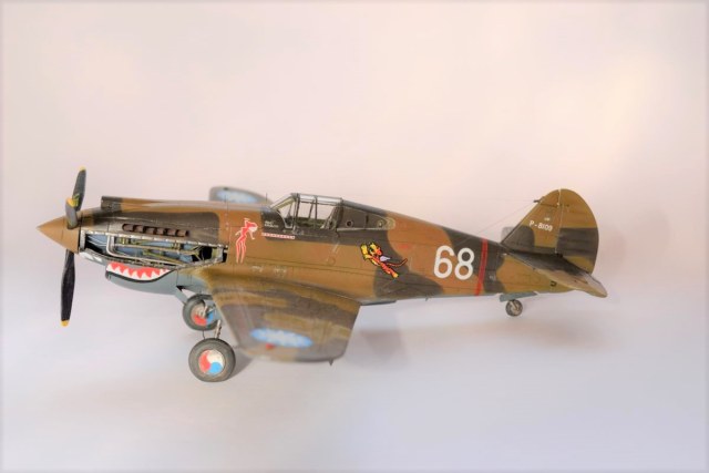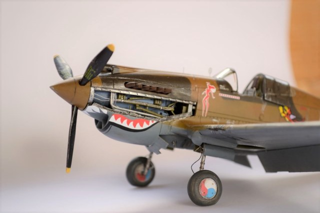 Модель сама по себе неплохая и хорошо собирается. Доработок особо немного: прошелся по двигателю, с одной стороны раскапотировал, кое где поправил расшивку, добавил пару жалюзи и патрубков снизу за радиатором, заменил БАНО и стволы крыльевых пулеметов. Смоляные шасси, траление и закрылки Eduard(правда для модели Airfix, для Bronco они выпустили позже, но тоже подошло неплохо). Для антенны на пробу взял Ammo Mig RIGGING – MEDIUM FINE 0.02 MM. Окраска акрилом, смывка, немного сколов, пыли и нагара. Вот в принципе и все.