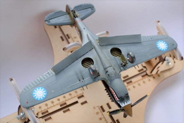 Предложу на будущие: попробуйте технику предварительного затенения (задуть аэром чёрную краску по всем швам перед окраской) очень преобразит модель. На этой модели рули направлений изготовлены отдельными деталями, а элероны отлиты за одно с крылом, попробуйте прорезать (углубить) швы. Не увлекайтесь сколами, запросто можно переборщить, а остановиться тяжело. )