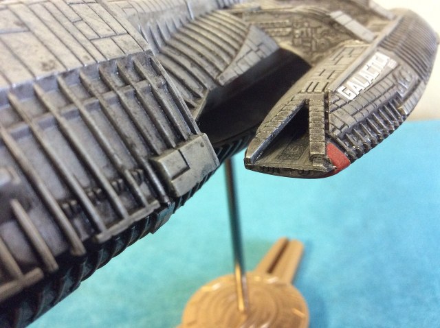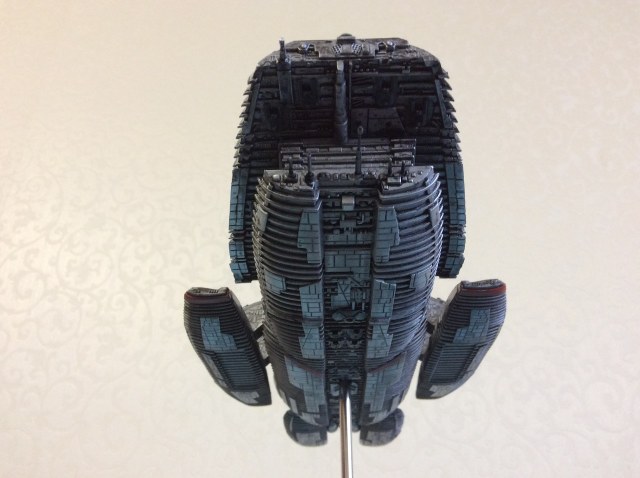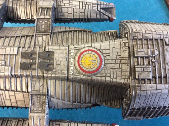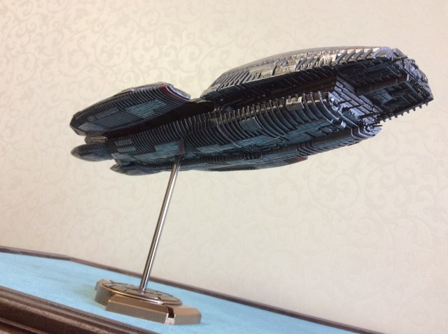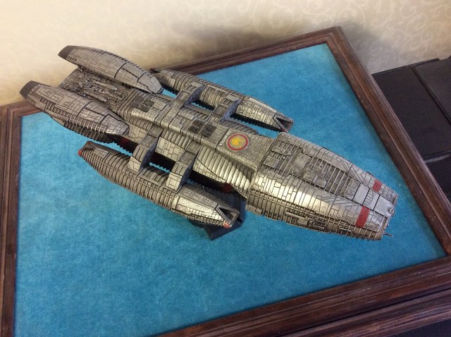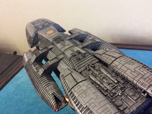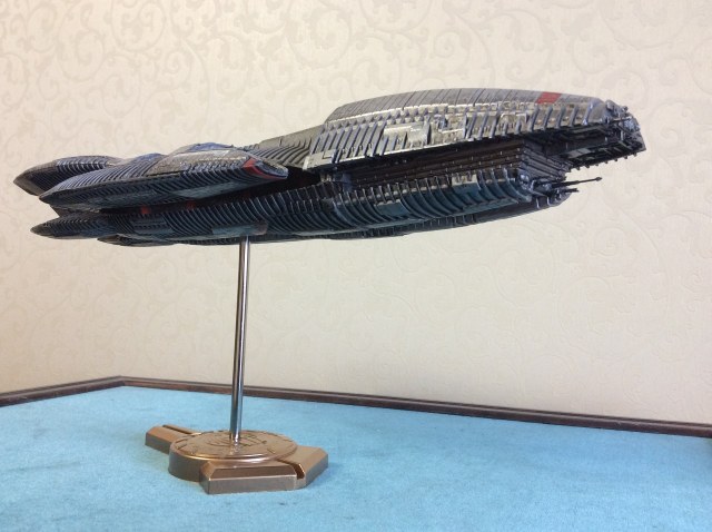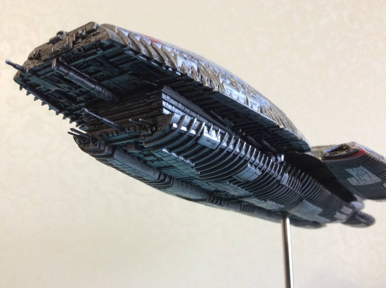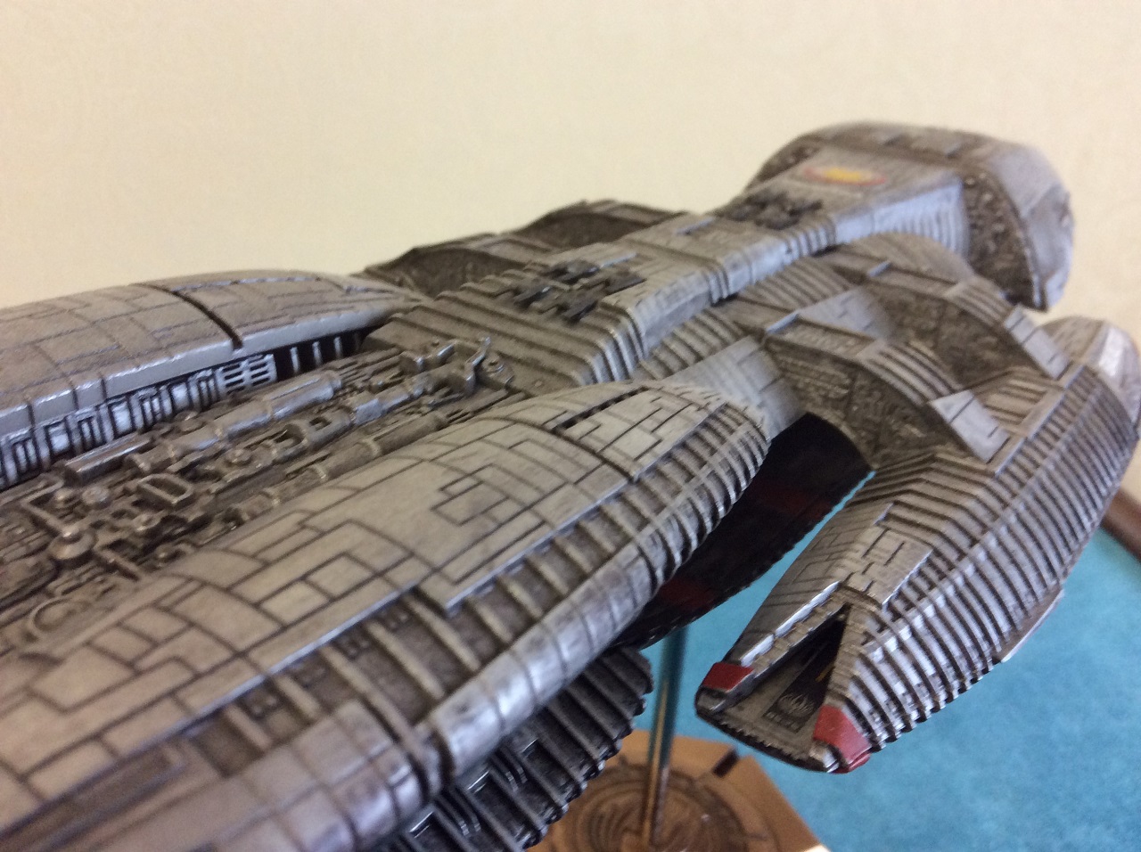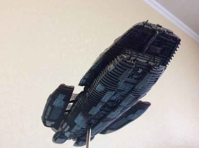 Решил выставить на ваш суд свое,очередное творение Звездный крейсер Галлактика. Модель от фирмы Ревелл в масштабе 1/4105 размер модели 39 см .