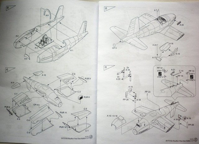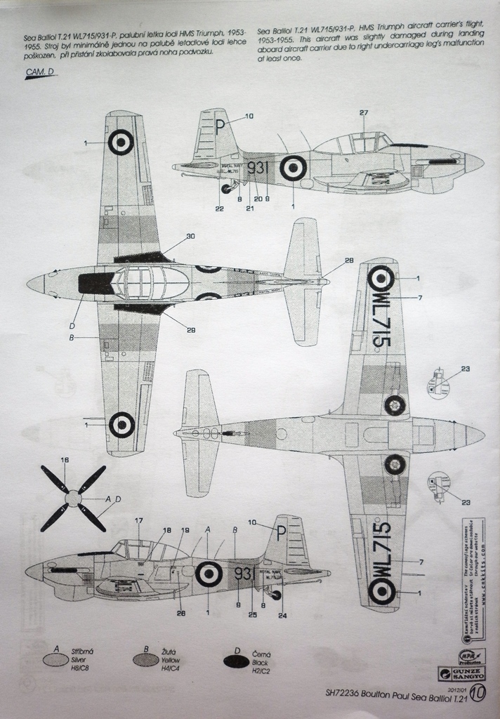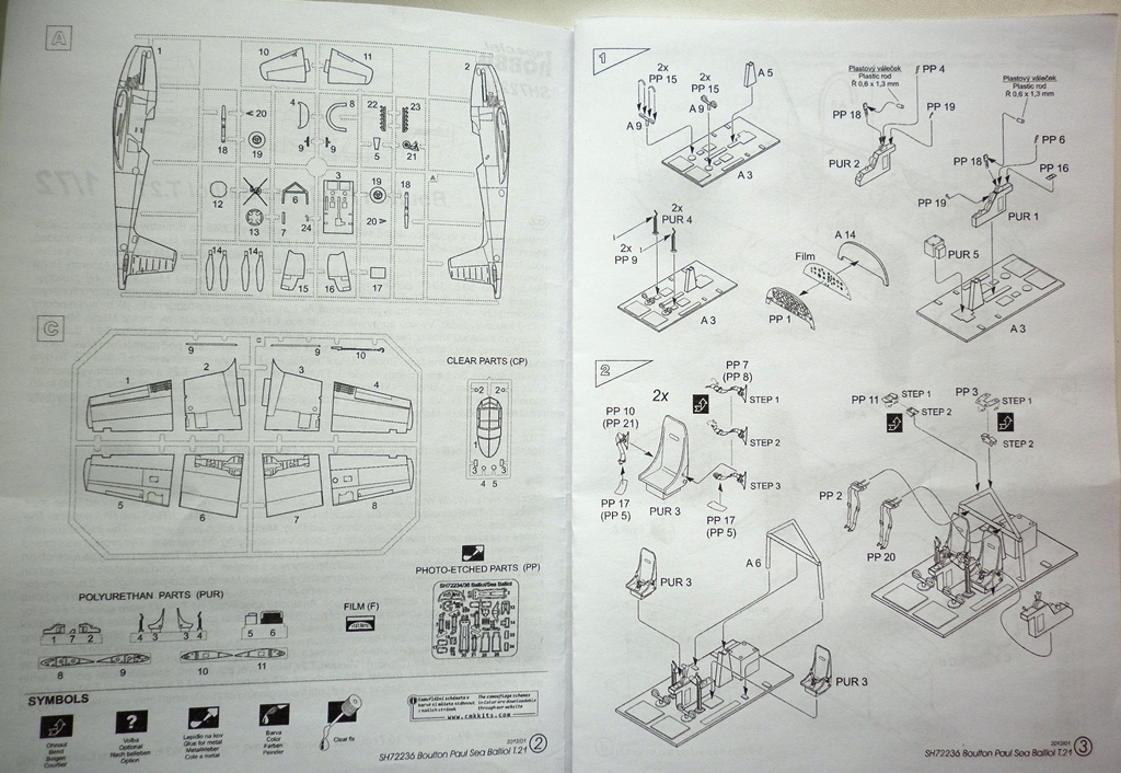 Теперь о вакушке... Честно говоря, полная ассоциация с моделями от МАВИ. Такой же белый мягкий пластик, четкий крой, металлические детали , впрочем, неплохого качества. Инструкция содержит проекции самолета в 72м масштабе, остальное - в виде текста. Декаль придется подбирать или заказывать.