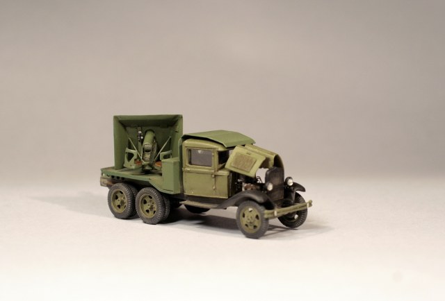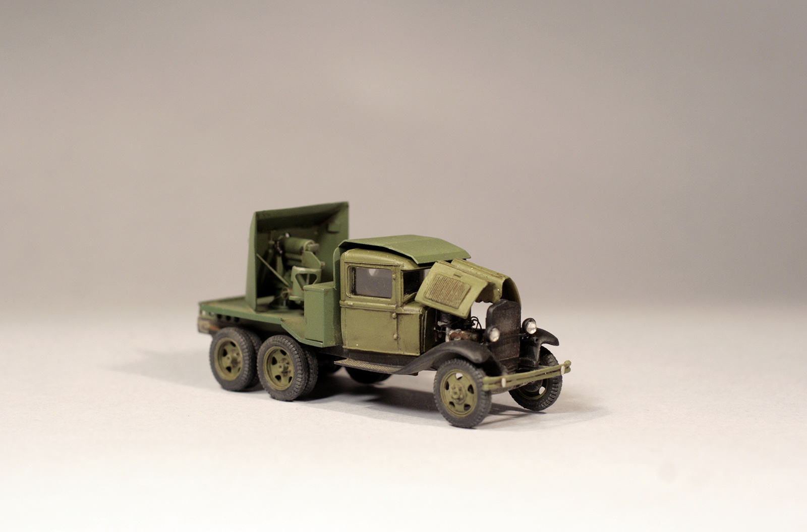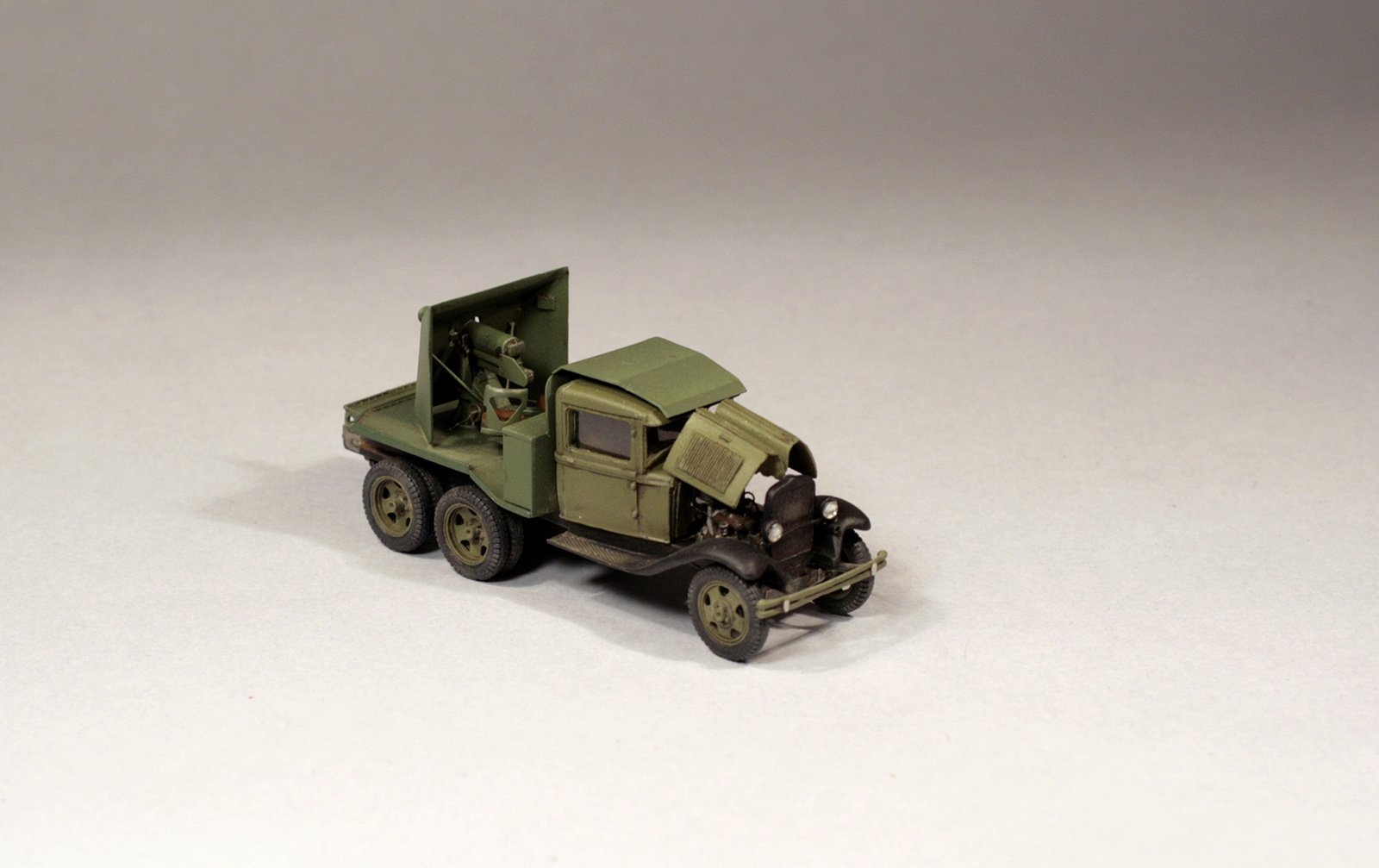 Прототип этой модели - первая массовая советская САУ, вооруженная 76,2-мм пушкой образца 1927 года и установленная на шасси грузовика «Морланд» или Газ-АА. Выпущено их было под сотню и машины разных годов выпуска сильно различались между собой по конструкции щита и прочих деталей. Чуть более подробно - на Вики.