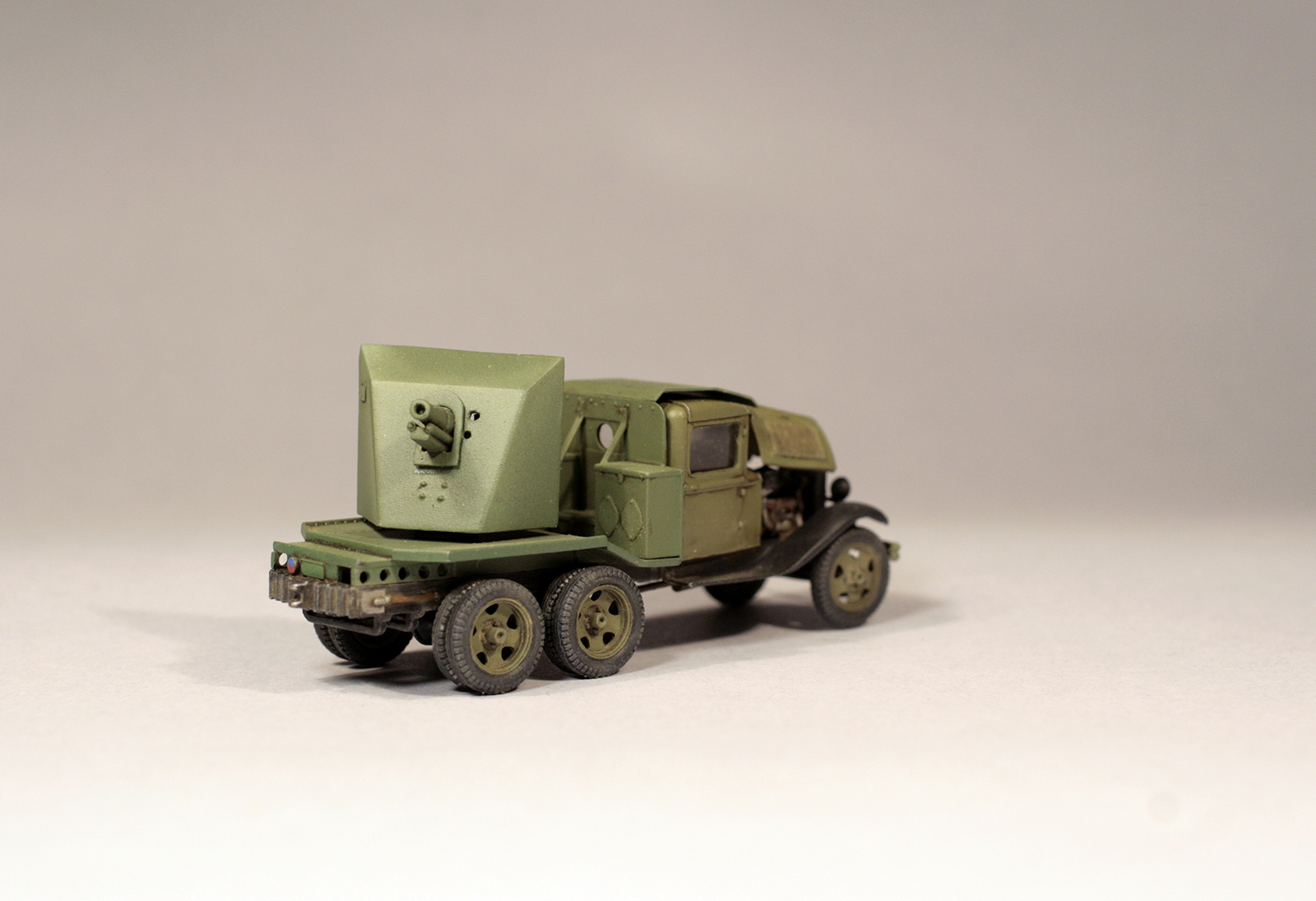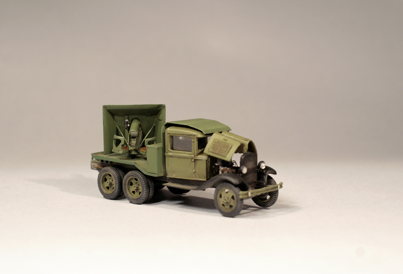 Модель - от фирмы UM. Плюс смоляной движок от Armory, колеса от Комлпект-ЗИП. Сама модель - неплохая, хотя упрощенная. Двигатель как-бы подается как универсальный, но по сути не ставится нормально ни на одну из моделей ГАЗ-АА/ААА в 1/72, так что приходится изрядно пилить и доделывать