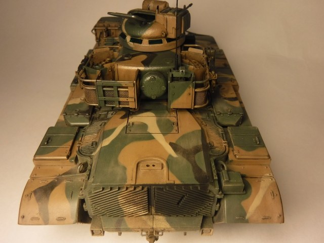 Так как в матчасти по данному танку не силен, скажу по окраске. В модели понравилось аккуратное нанесение камо, реалистичное загрязнение ходовой части. На самом корпусе и на башне в унисон ходовой можно будет отработать следы незначительной эксплуотации. А ежели еще и хорошо расписанного танкмена туда, то модель реально оживет !