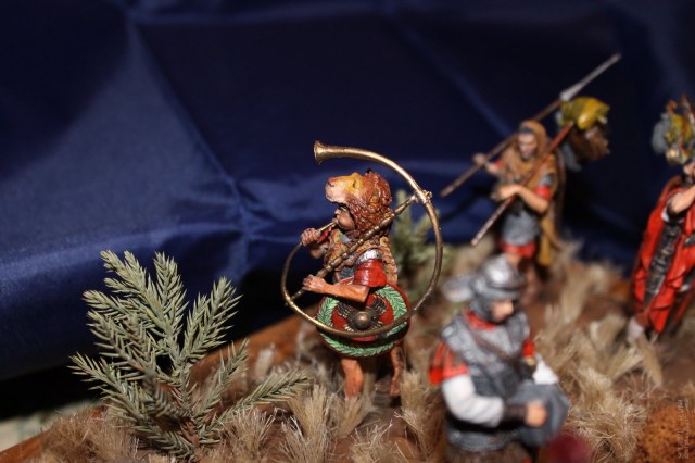 И ещё. Легионер на заднем плане, тот, что с пилумом на плече, несколько выбивается из временных рамок - у него шлем типа Монтефортино, а такие к Дакийским войнам фактически вышли из употребления - после первой половины 1 века их почти не носили.
