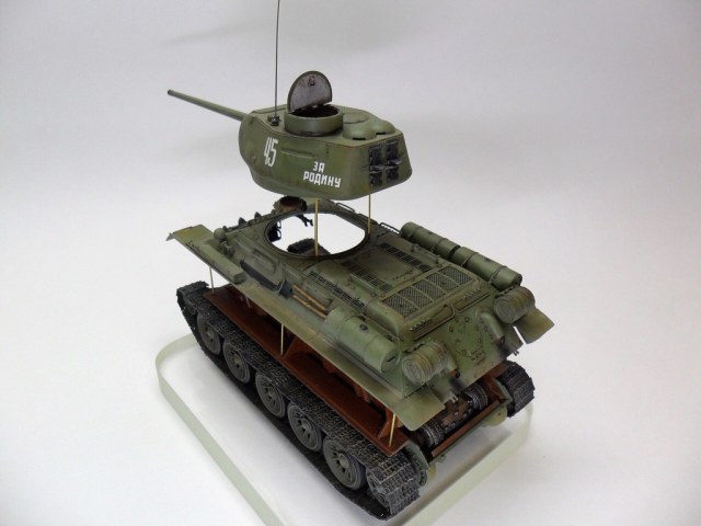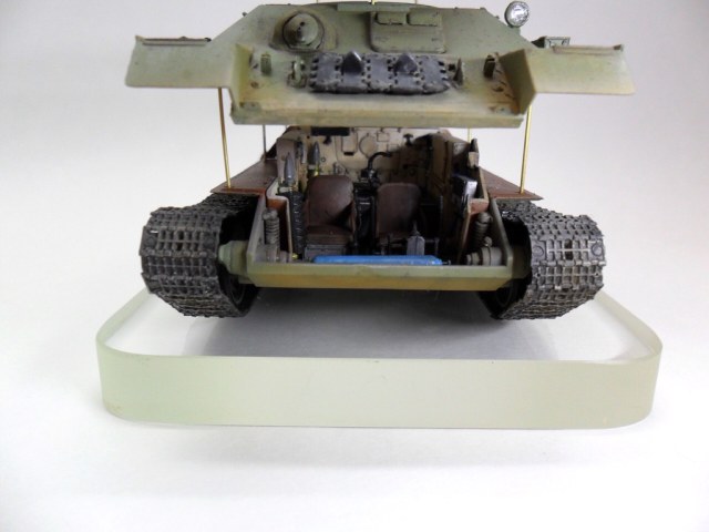Работа понравилась. Но хотелось бы всё таки увидеть нутро, чего практически не видно на фото. Вам вероятно надо просто добавить отдельно фото вутрянки "ванны", "крышки" корпуса изнутри, ну и соответственно башни. Иначе фото не отражают полной картины, тем более у вас есть что показать.