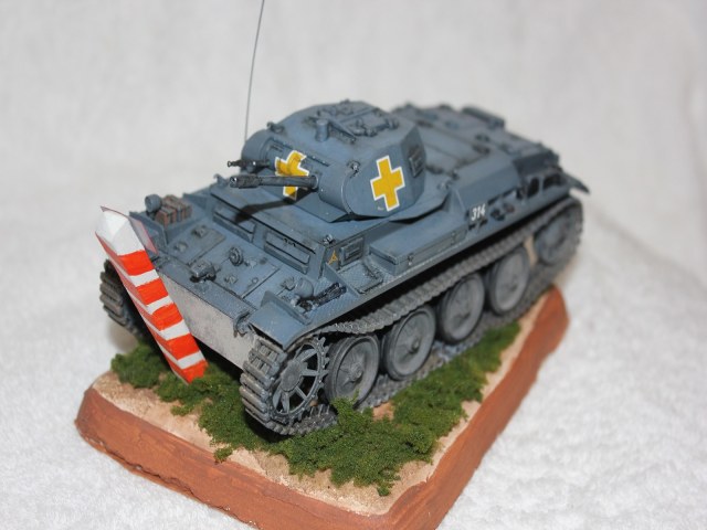 Всем капитальный привет уважаемые коллеги по опасному хобби.Представляю вам очередную свою работу.Собирать её начал месяца полтара назад по совету своего друга каропчанина.Так как я моделист начинающий,то продолжаю переть по старым граблям не одев на голову подходящий предмет снаряжения,т.е собирать модели фирм АРК-моделз,Моделист и т.д и т.п. Готовился к сборке сего шедевра как к прохождению сурвайвел хорора типа Сайлент Хилл или Резидент,мысли в голове бегали разные(хорошо ли стыкуются траки , выпрямились ли руки, все ли детали на месте). На удивление траки собрались хорошо....но небыло дульного тормоза у двадцатимилиметровки, сконверсил его как смог. Не хотелось называть виньетку просто названием машины,добавил не много философского сысла.