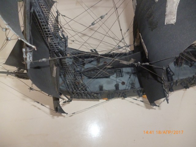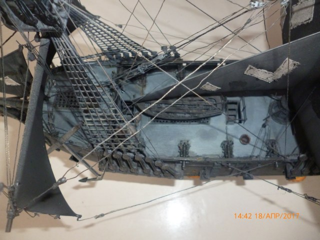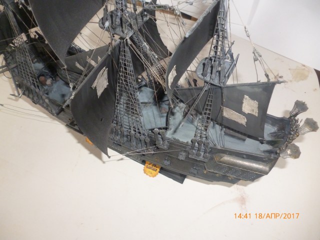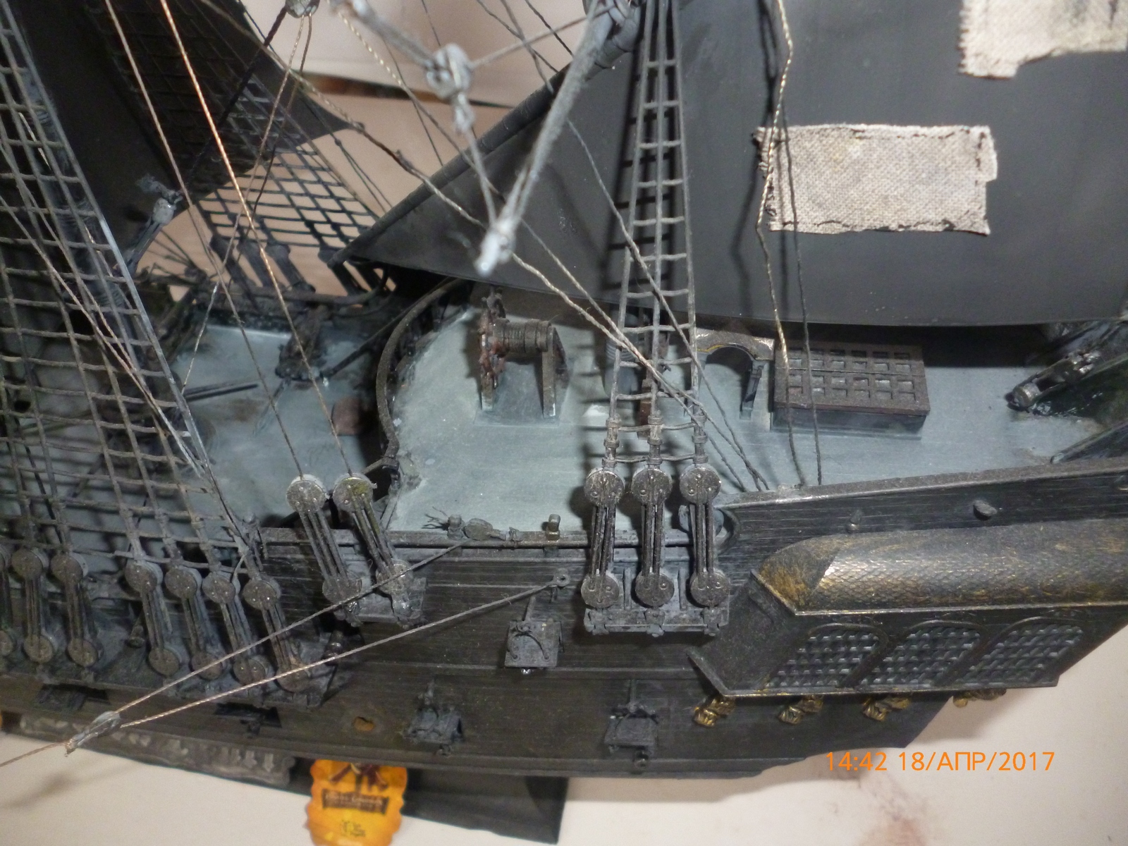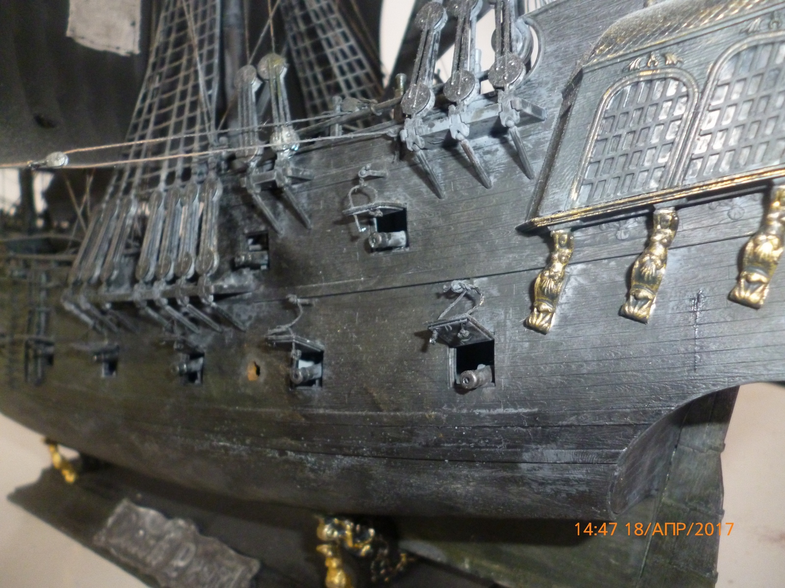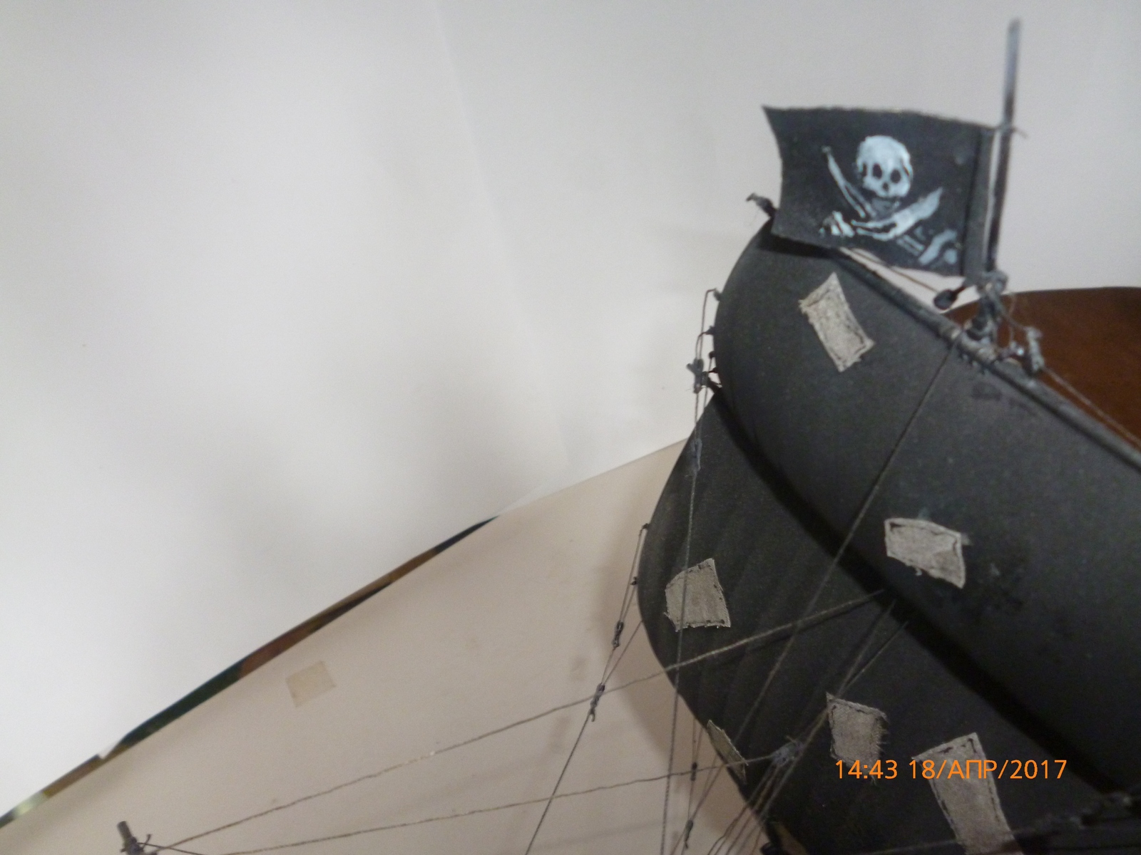 Добавлю немного. Шлюпка не обвязана. Имитация пробоин от ядер не получилась. Шлюпку и артиллерию не видно вообще.