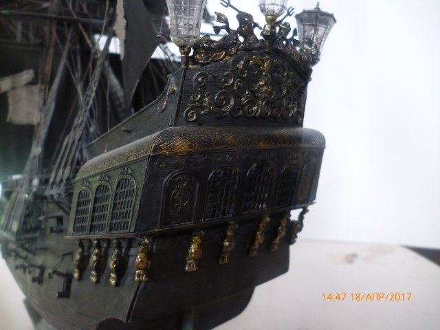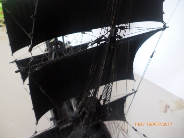 Очень противоречивые чувства вызывает модель... С одной стороны парусник довольно сложный, и то, что Вы его победили это уже хорошо! НО на мой взгляд слишком увлеклись созданием образа . Получился ИМХО перебор по части покраски и грязнения, к тому же в ущерб матчасти..В итоге смотрится все просто серо-грязным, расшивка на палубе вообще ушла куда-то... Толщины канатов не соблюдены, висят многие неестественно... Впрочем, если Вы планировали просто собрать корабль, то результат есть, а если подходить серьезней... - нужно штудировать матчасть: устройство элементов парусника, толщины канатов, и т. д.